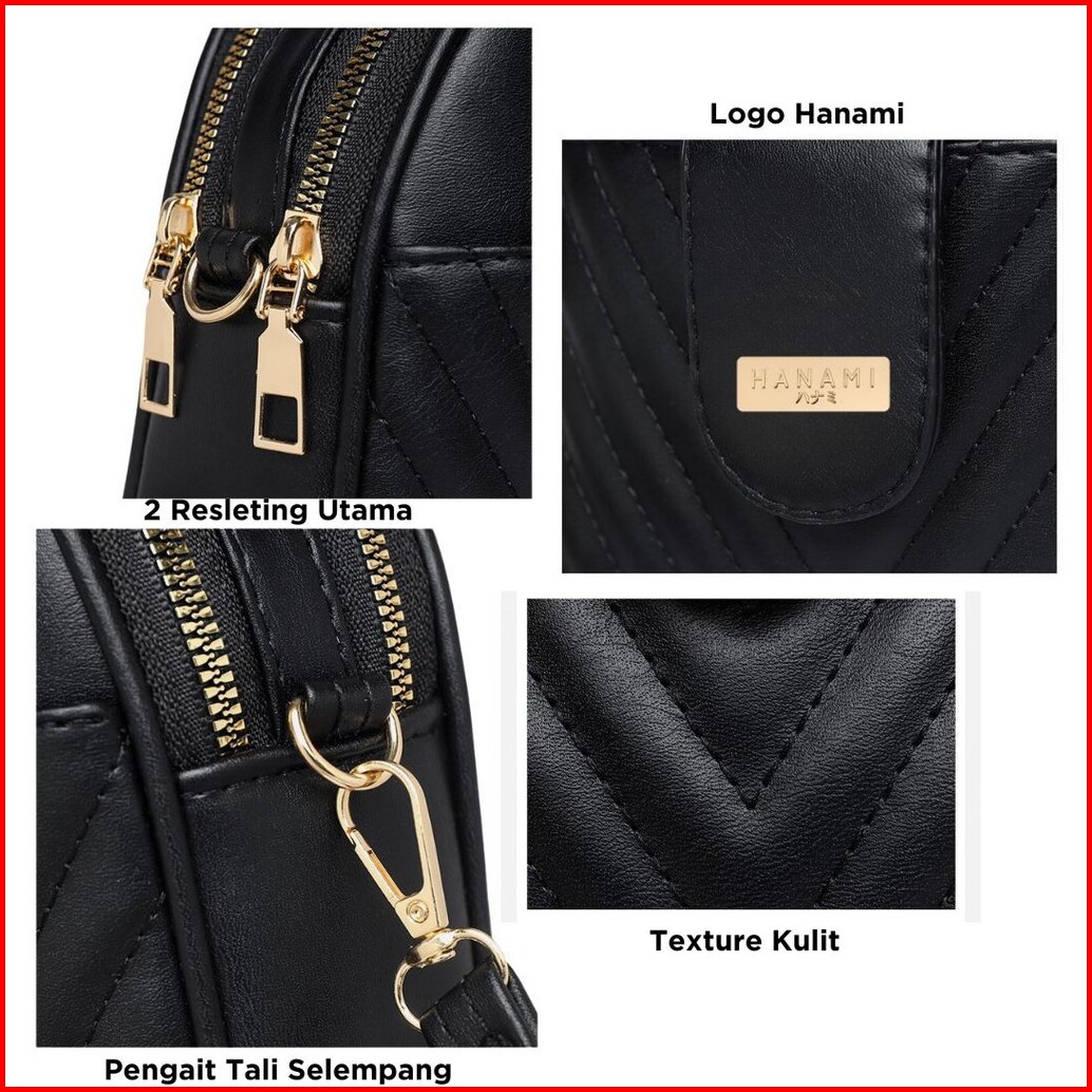 Hanami Tas Selempang Wanita Rimenva Hitam Kulit Premium Cantik Terbaru Branded Korea Ta999b5