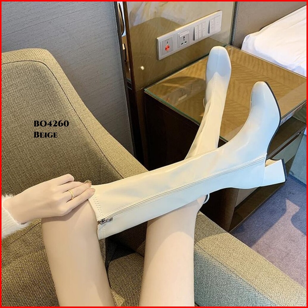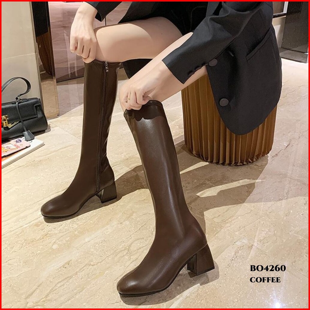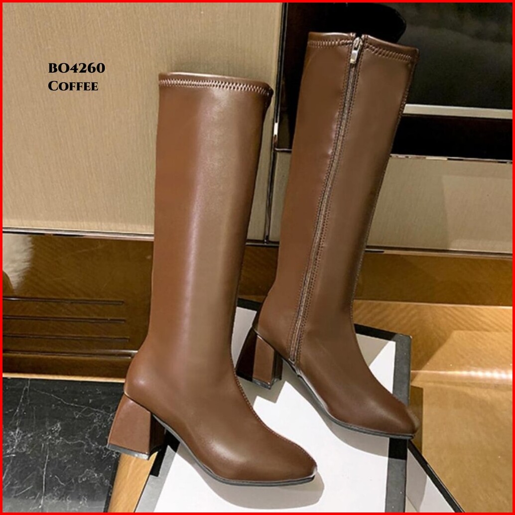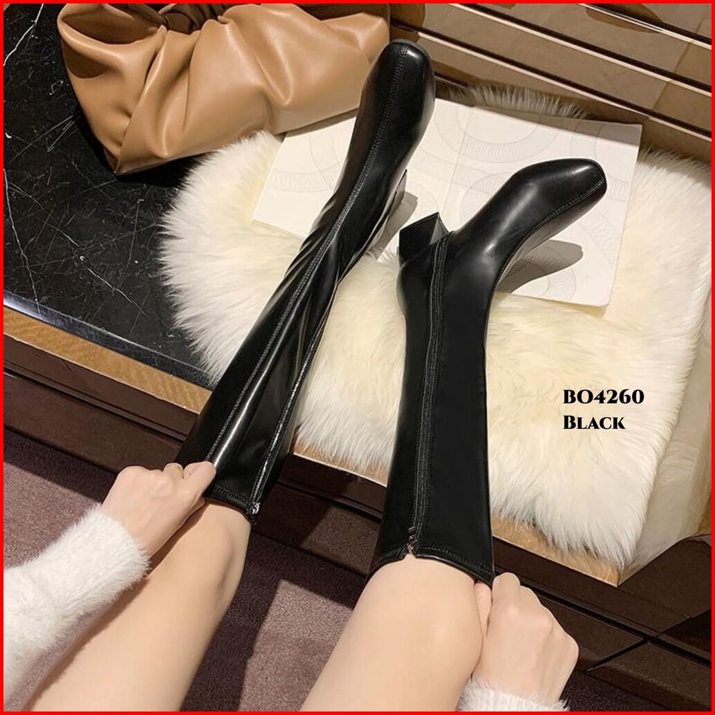 Bs Sepatu Long Boots Tinggi 6cm Black Beige 36-40 Kulit Sintetis Flat Korea Bo4260