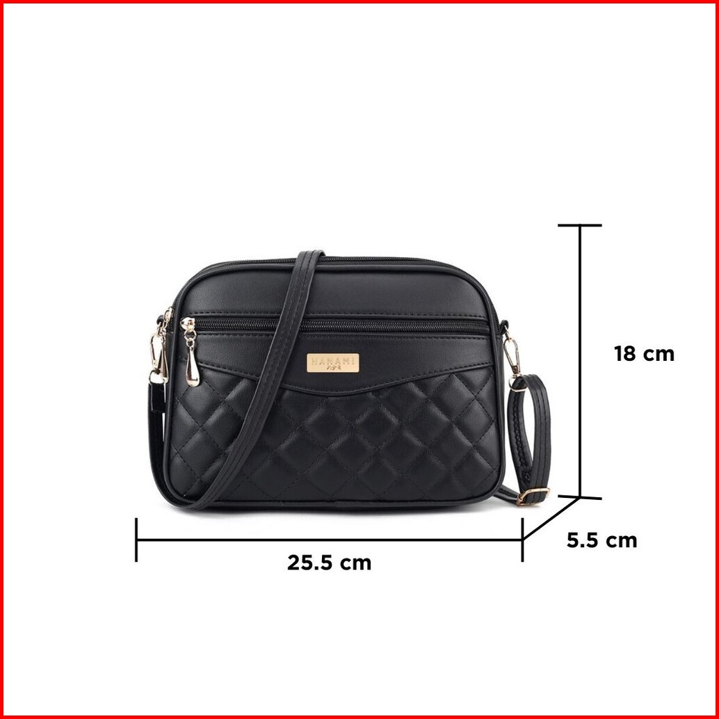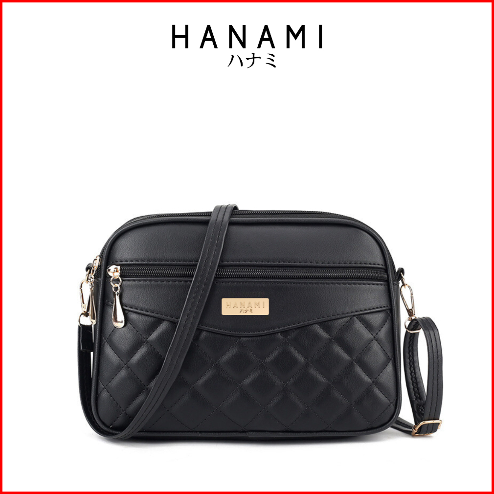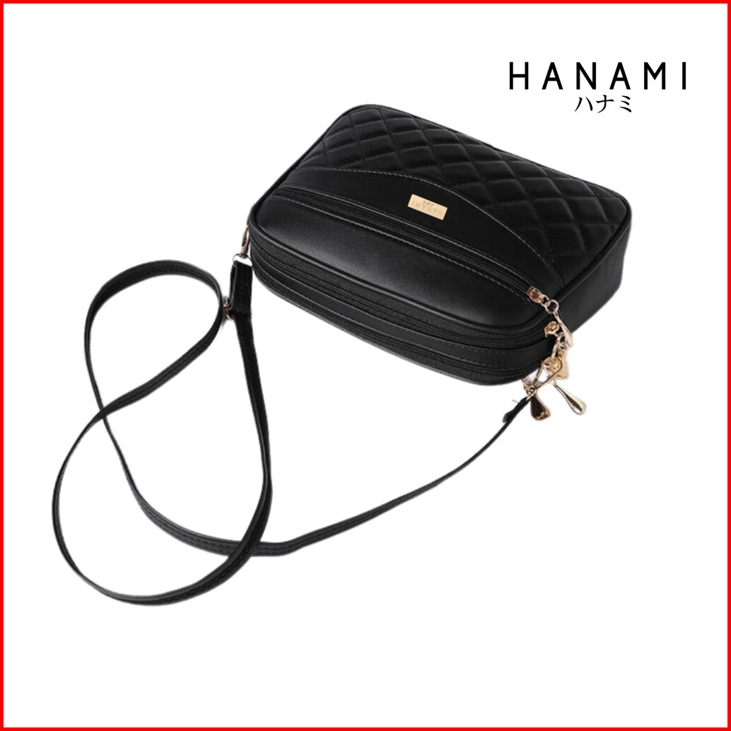 Hanami Tas Selempang Wanita Kekinian Kulit Hitam Sling Bag Cewek Zefia Fashion Casual Simple Terbaru