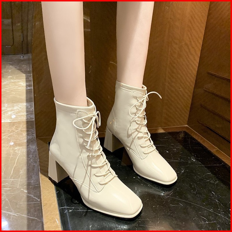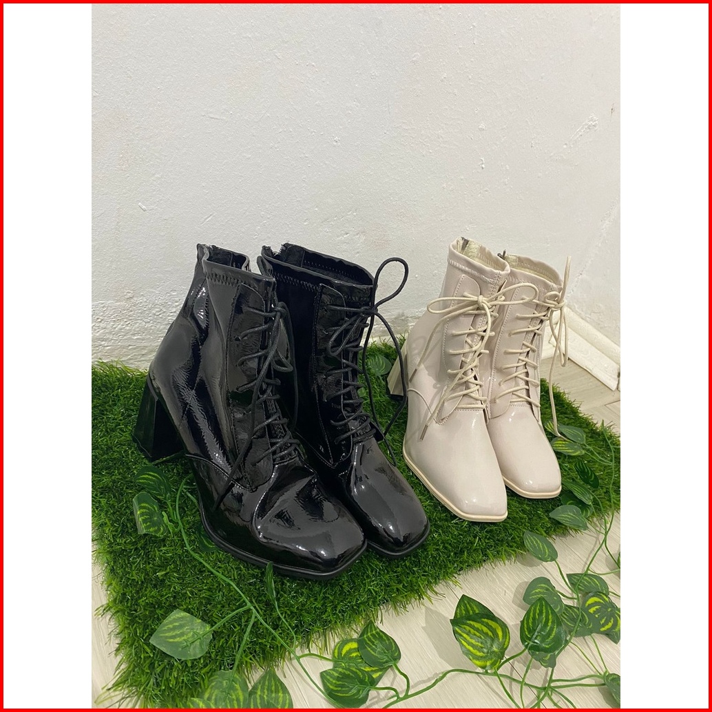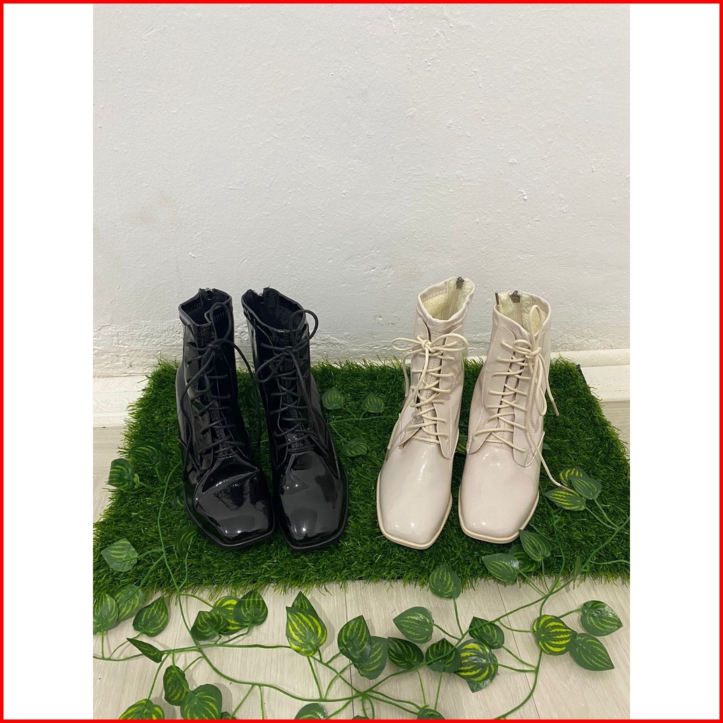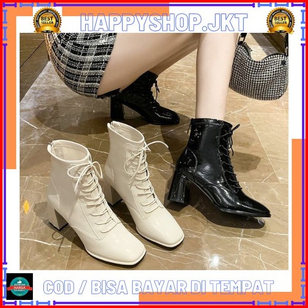 Hs Sepatu Boots Wanita Hak Sedang Kulit Premium 253