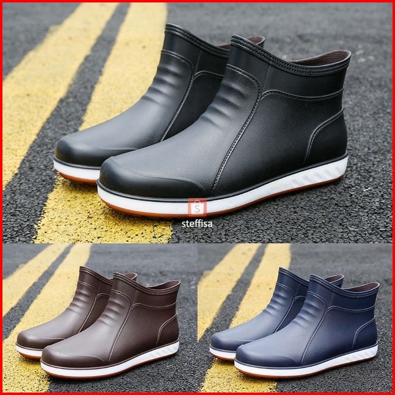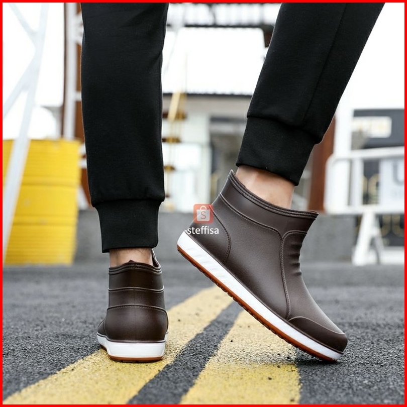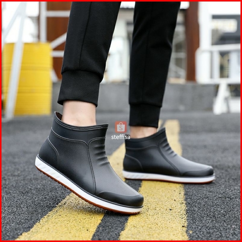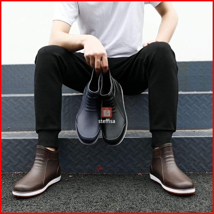 Sepatu Boot Fashion Pria Pendek Short Rainboots Anti Air But Lentur Impor