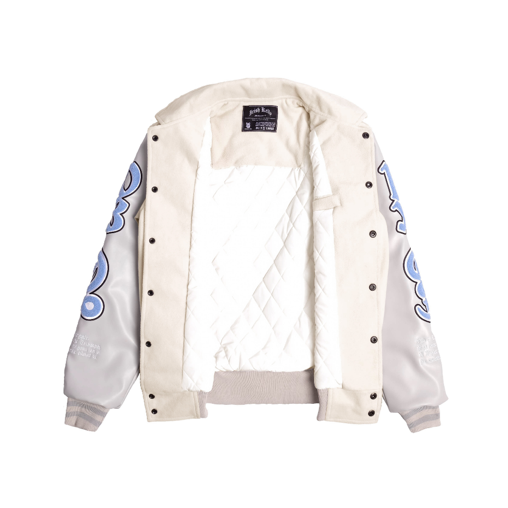 DC'STRANGE.CO Jaket Varsity Irish Kelly Triumphant Varsity Jacket Cream Original