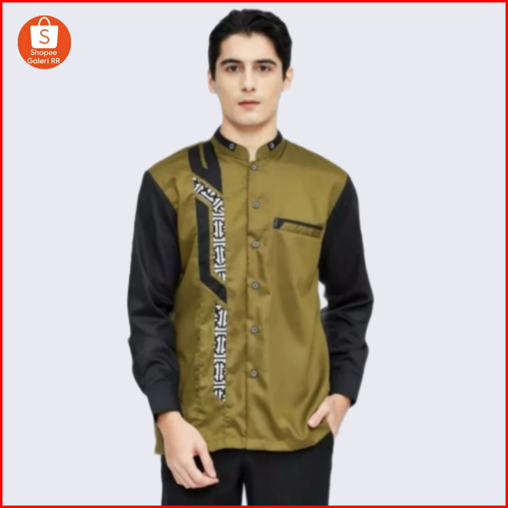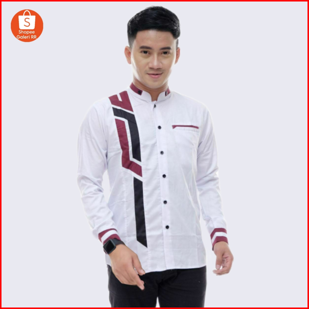 Baju Koko Putih Pria Dewasa Lengan Panjang Kombinasi Kemeja Shanghai Motif Sinergi Model Terbaru
