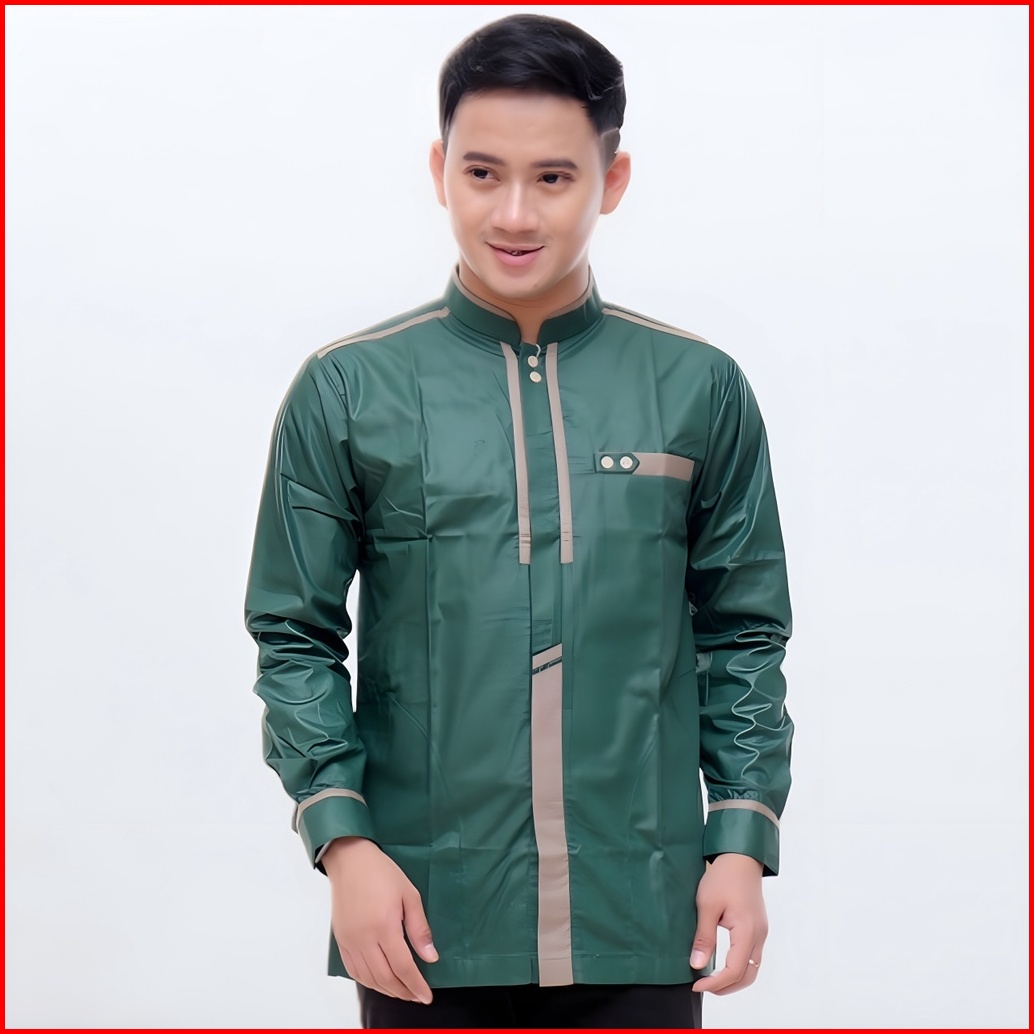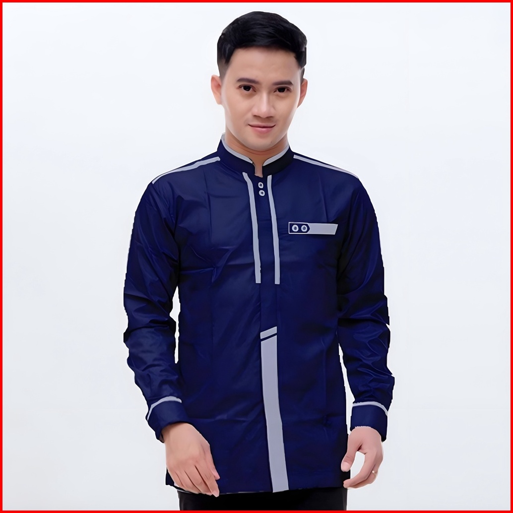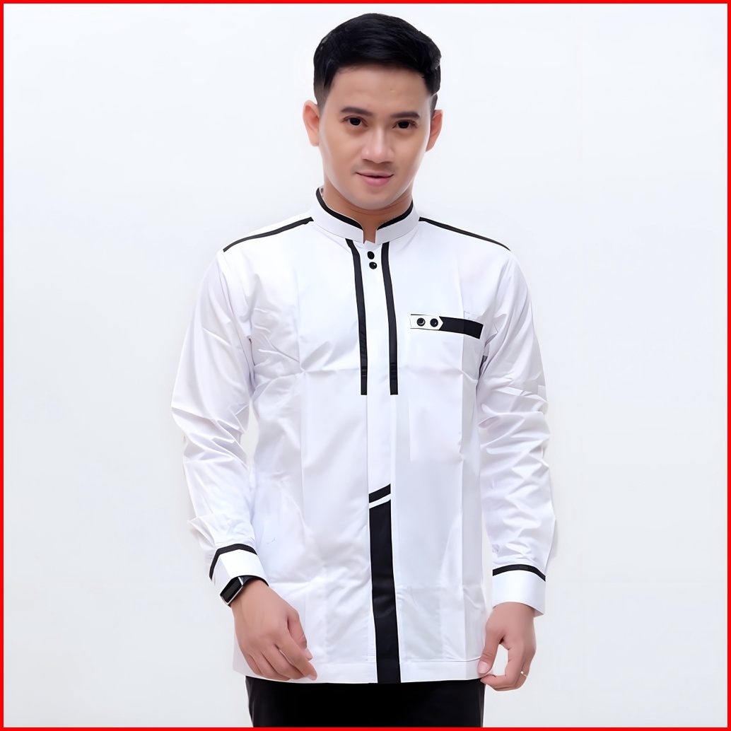 Baju Koko Pria Putih Motif Khatulistiwa Terbaru Dewasa Lengan Panjang Bahan Catton Adem