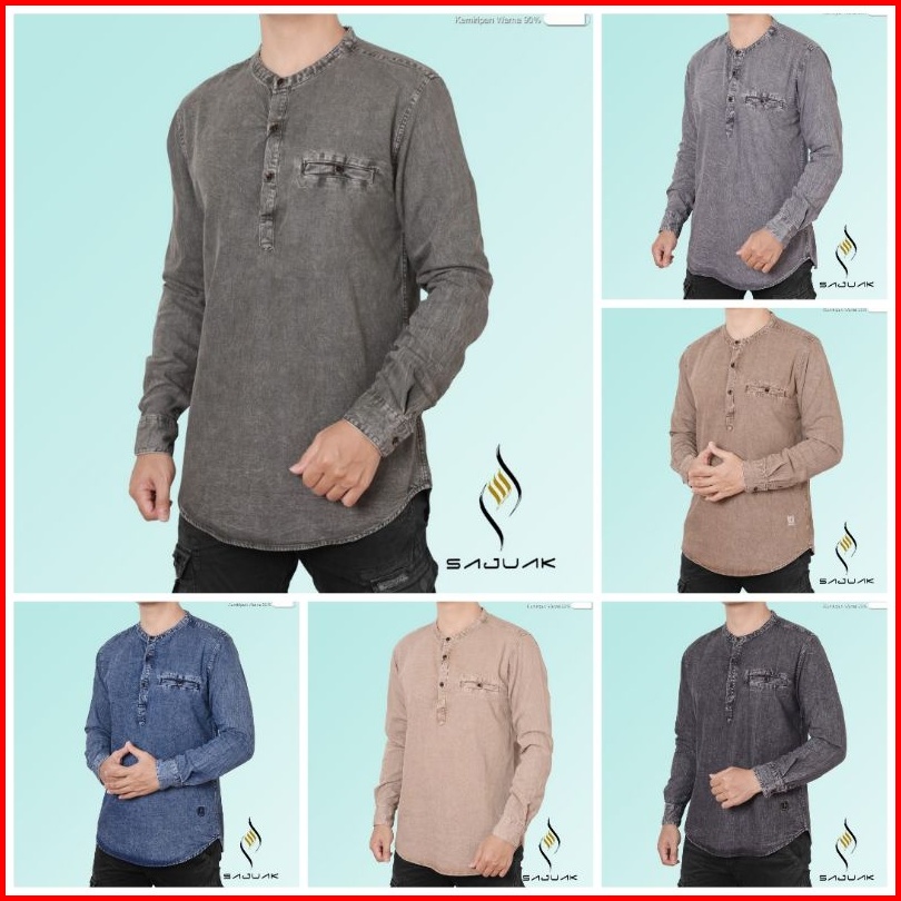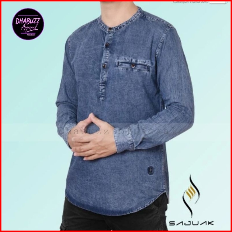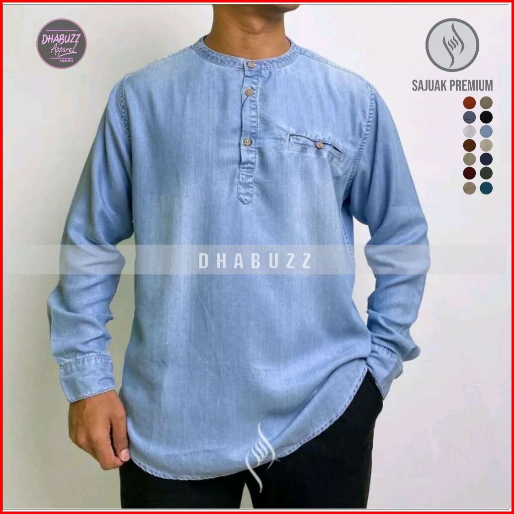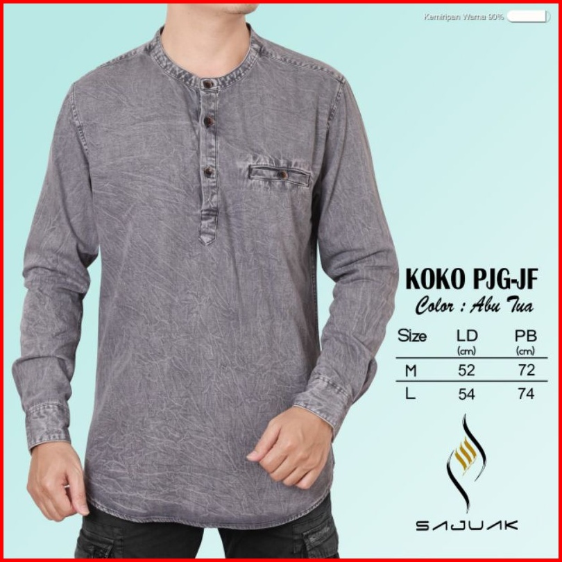 Baju Kemeja Koko Kemko Pria Lengan Panjang Denim Terbaru Limited Jf Original Sajuak