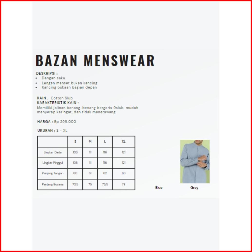Zoya Bazan Menswear - Baju Koko Pria Lengan Panjang - Bahan Cotton Slub