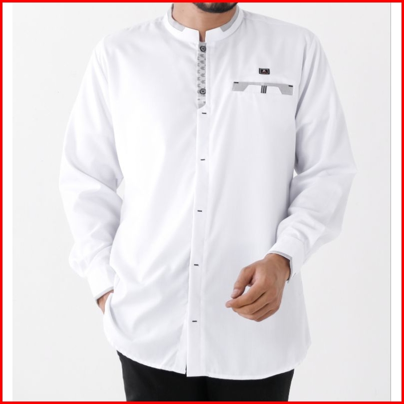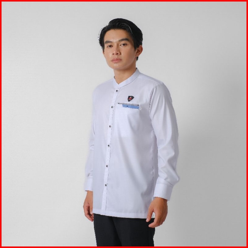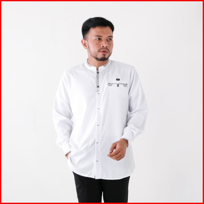 Anr Fadillah-kemko Kemeja Koko Atasan Muslim Pria Baju Koko Lengan Panjang Putih