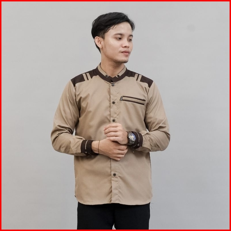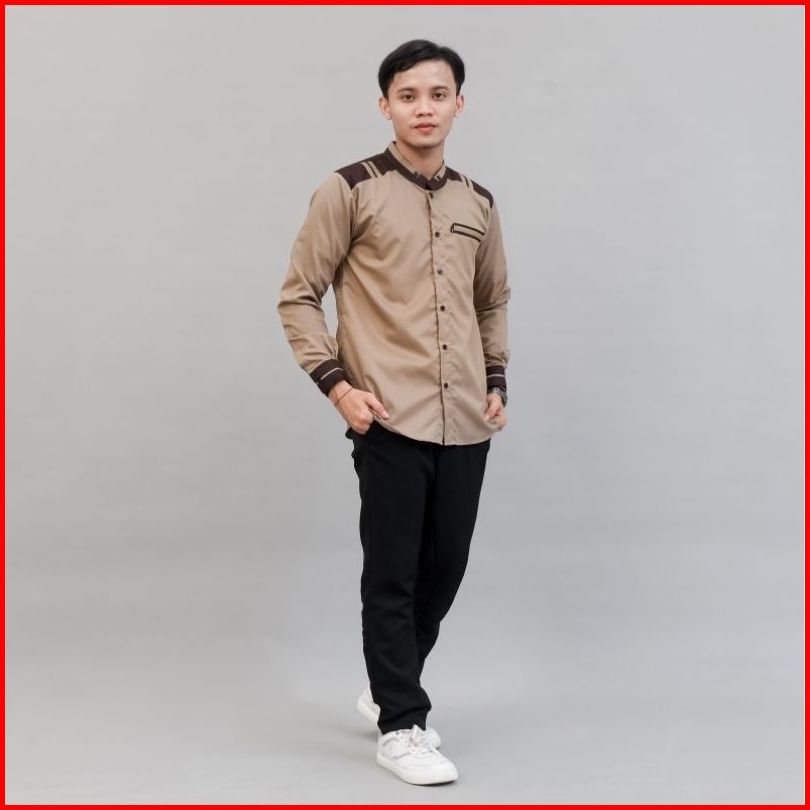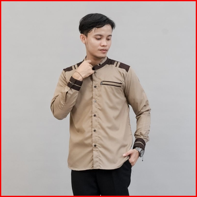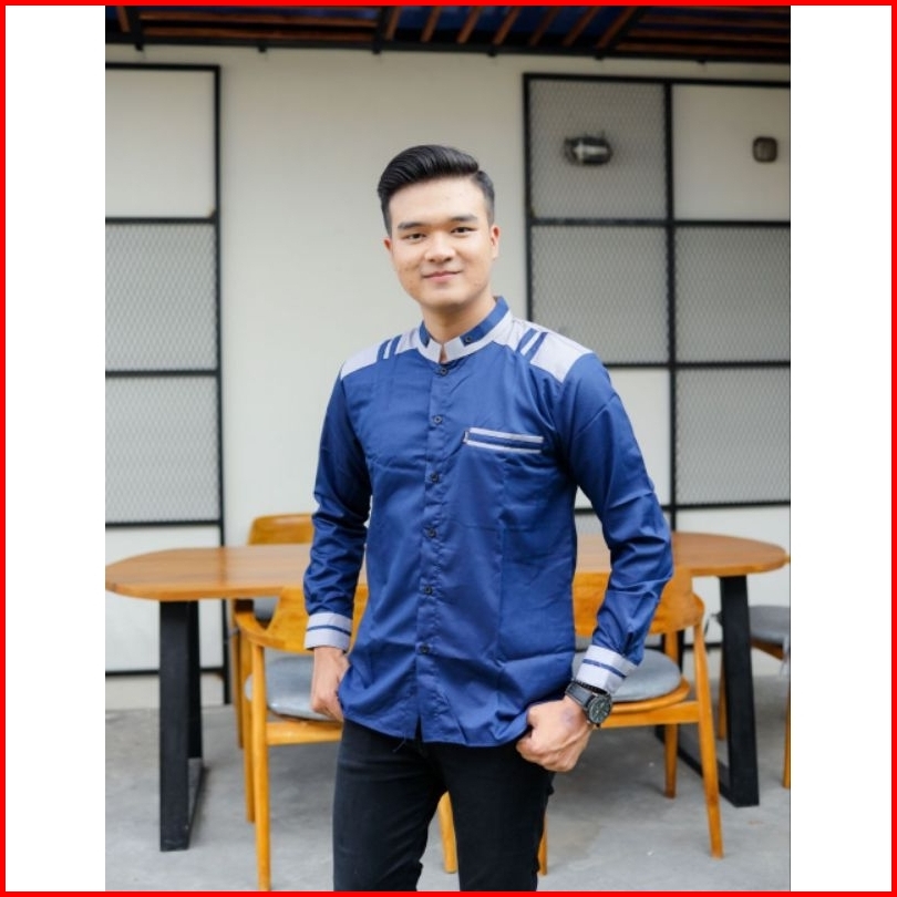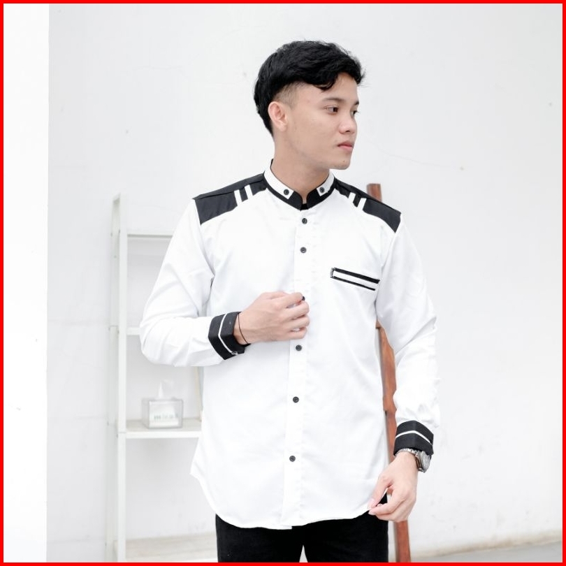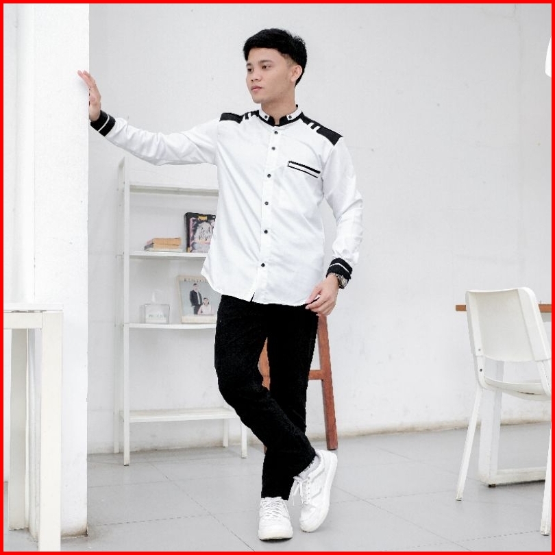 Baju Koko Elrumi Terbaru Motif Adidiz Kemeja Muslim Pria Dewasa Lengan Panjang