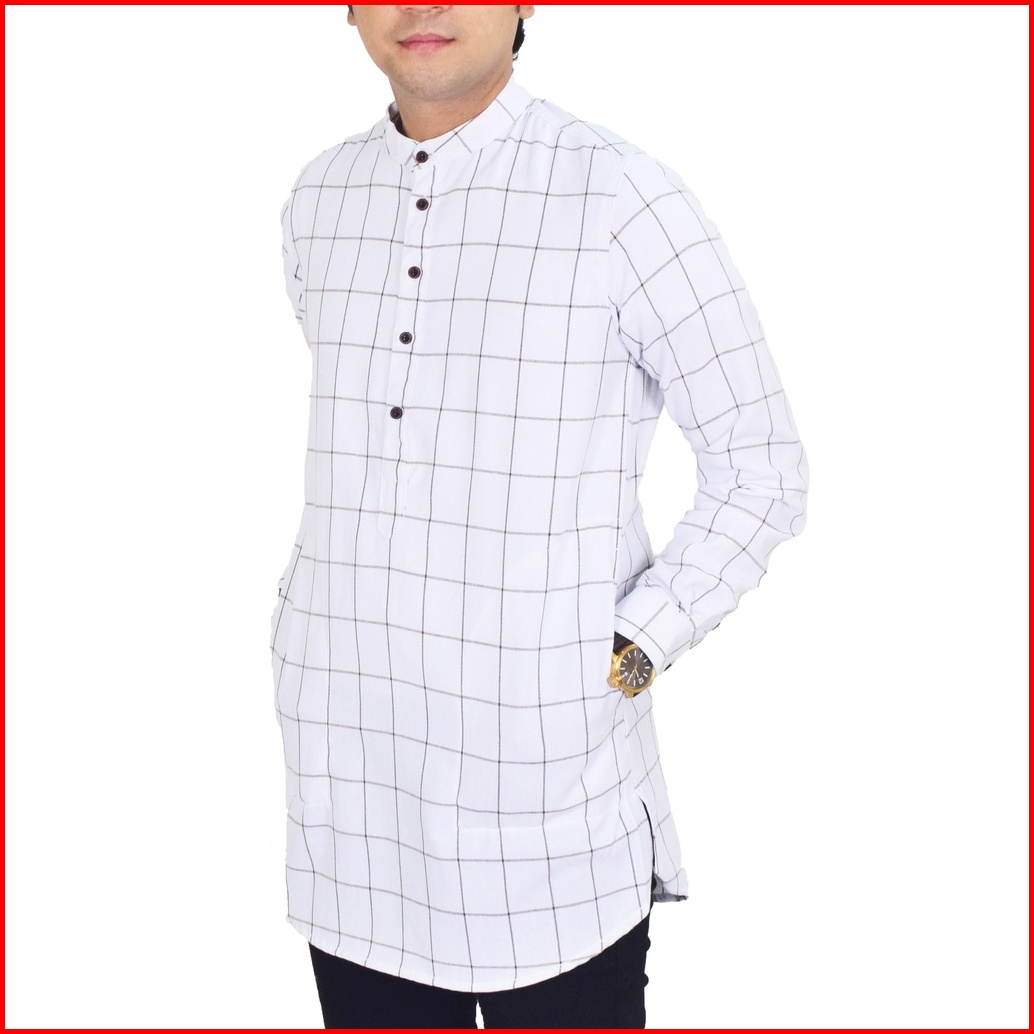 Kurta Pakistan Lengan Panjang Bahan Flanel Premium Impor Slimfit Gamis Pria