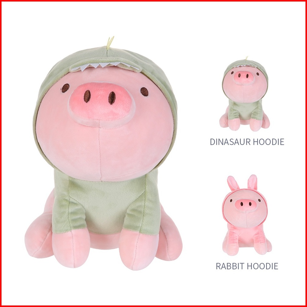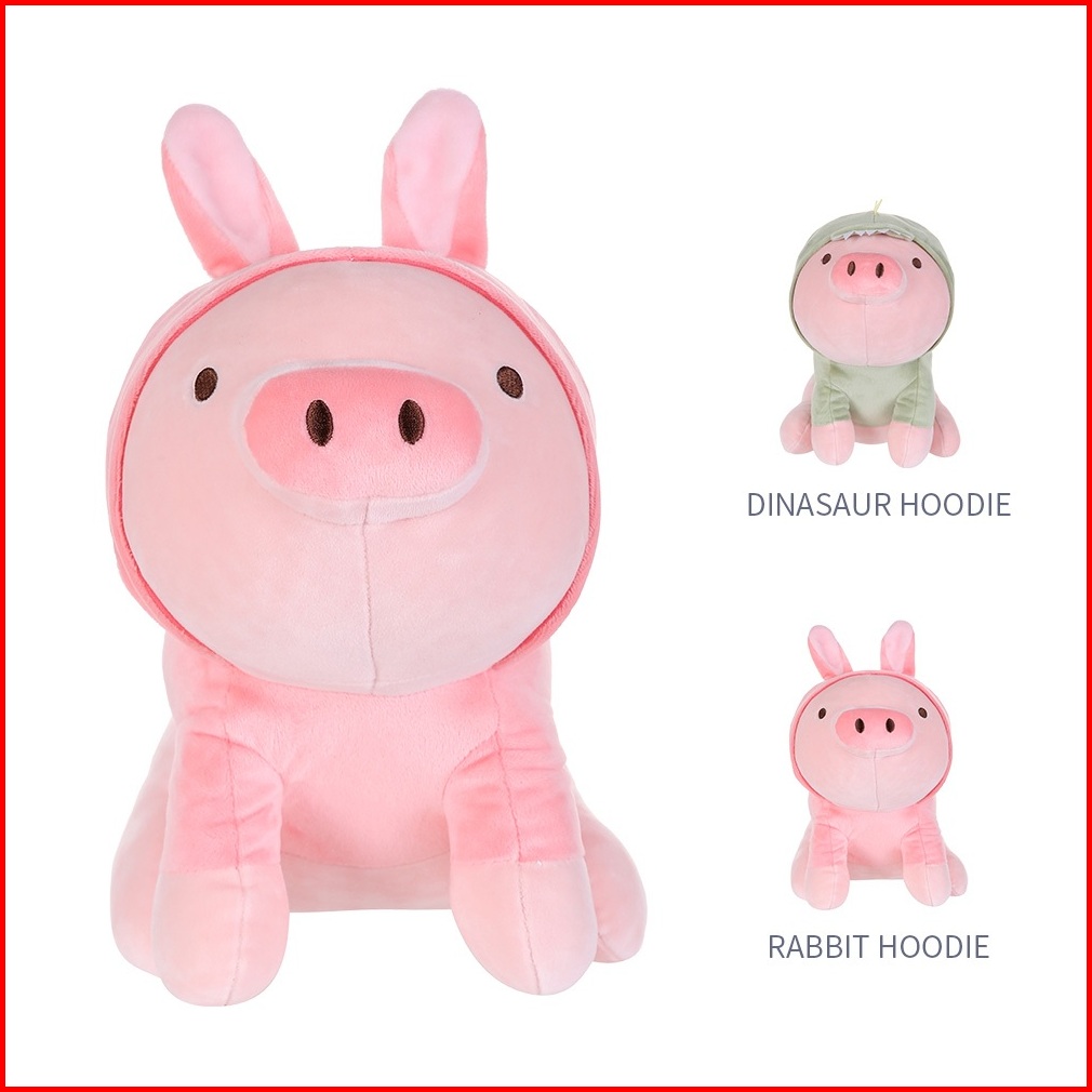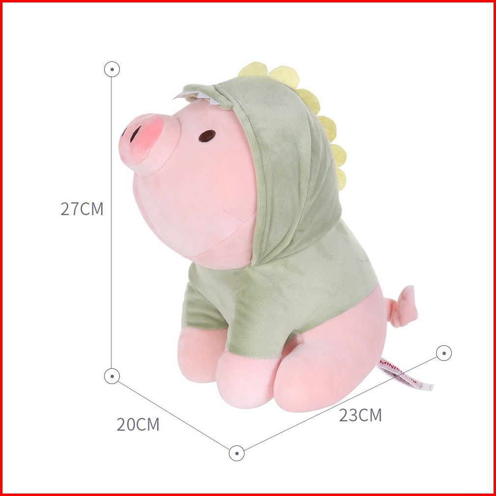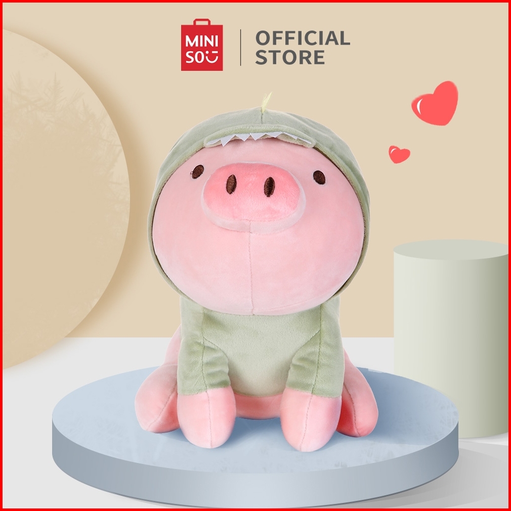 Miniso Boneka Mainan Anak Sitting Piglet Plush Toy With Dinosaur Hoodie