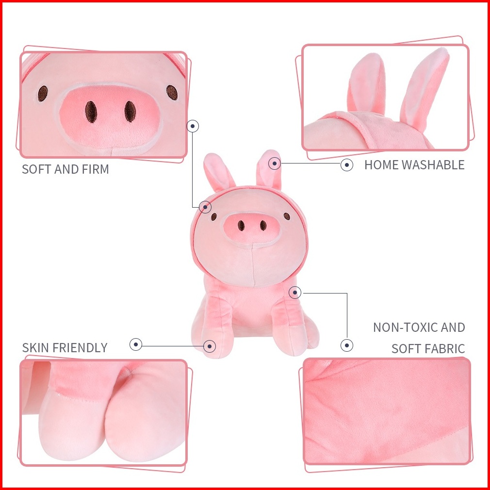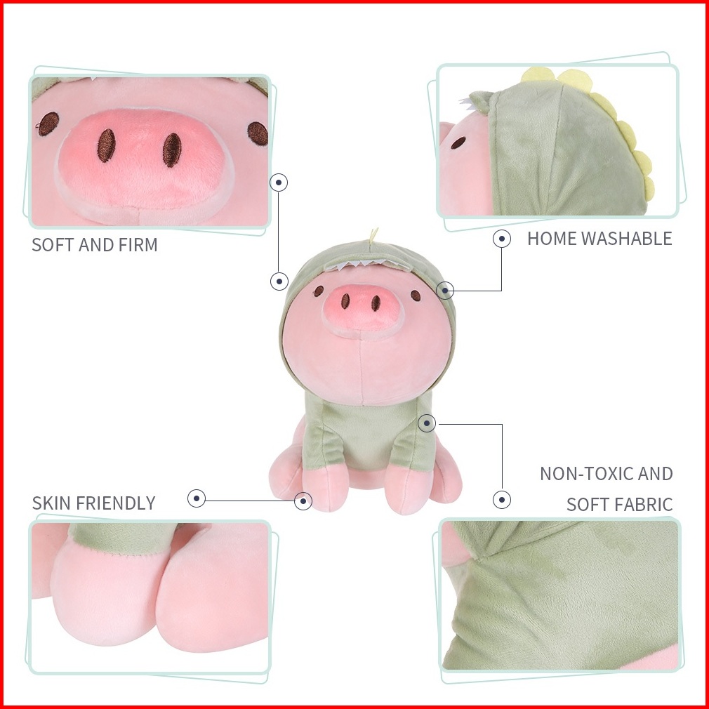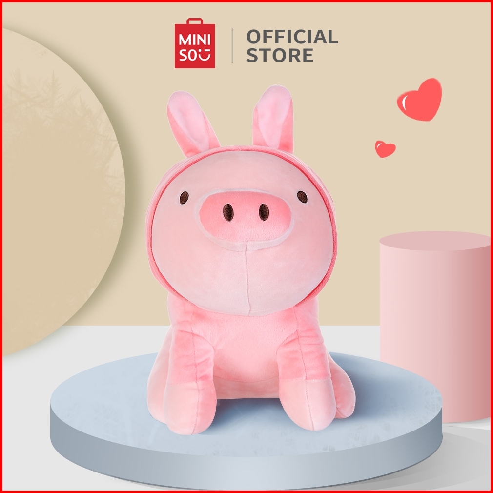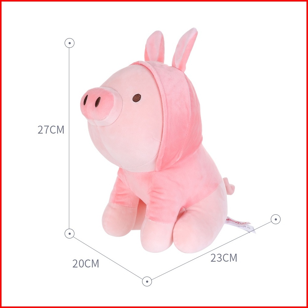 Miniso Boneka Mainan Anak Sitting Piglet Plush Toy With Dinosaur Hoodie