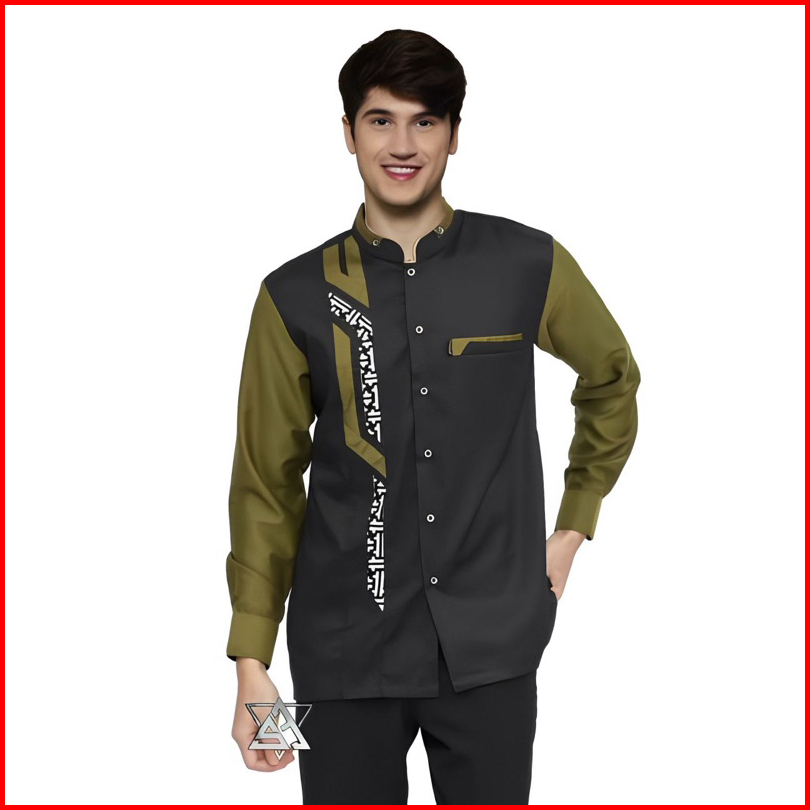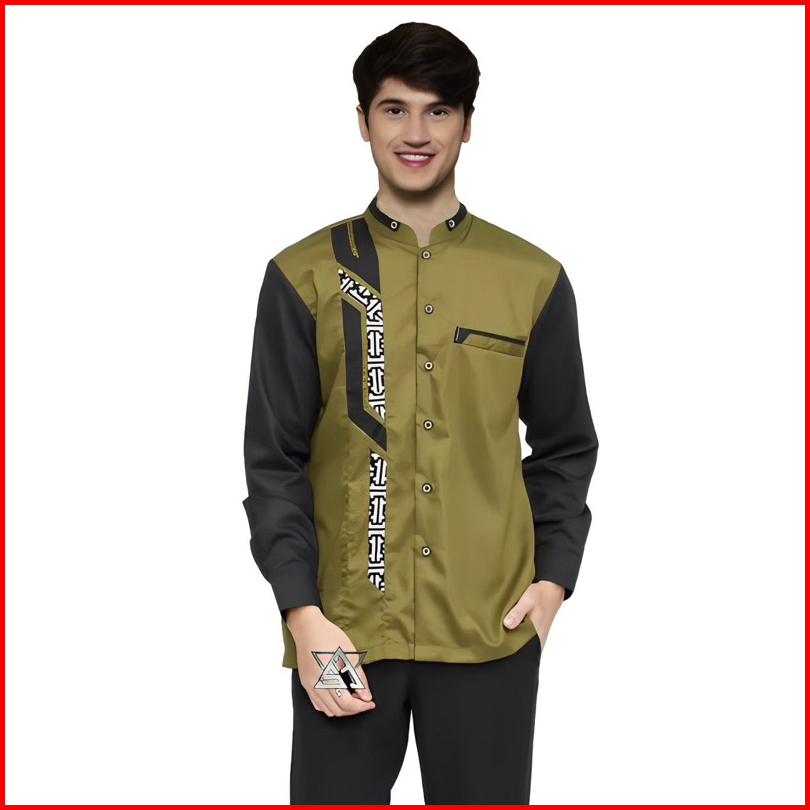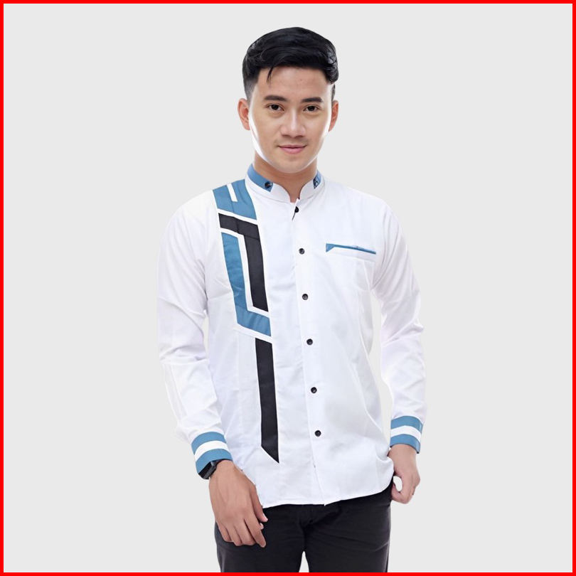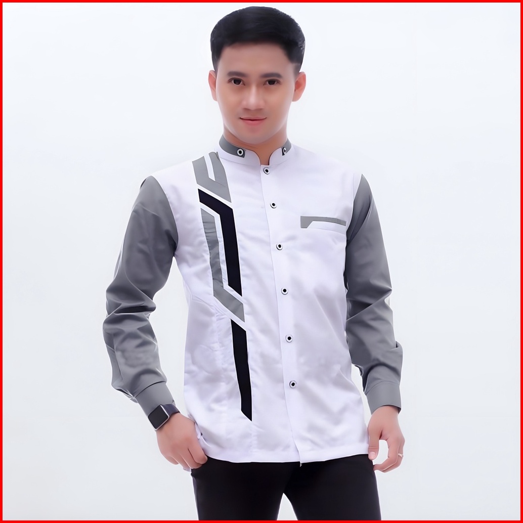 Baju Koko Pria Dewasa Lengan Panjang Motif Sinergi Terbaru Warna Putih Kombinasi Abu Original Hilwa Collection