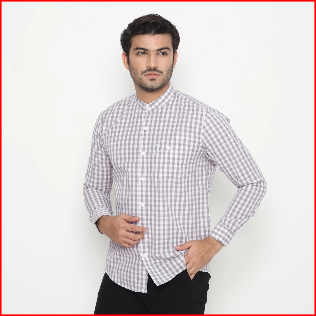Vanfive Kemeja Kemko Koko Kotak Kotak Katun Yandet Panjang Abu A1425