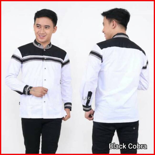 Baju Koko Hadroh Pria Lengan Paanjang Motif Black Cobra Terbaru M L Xl