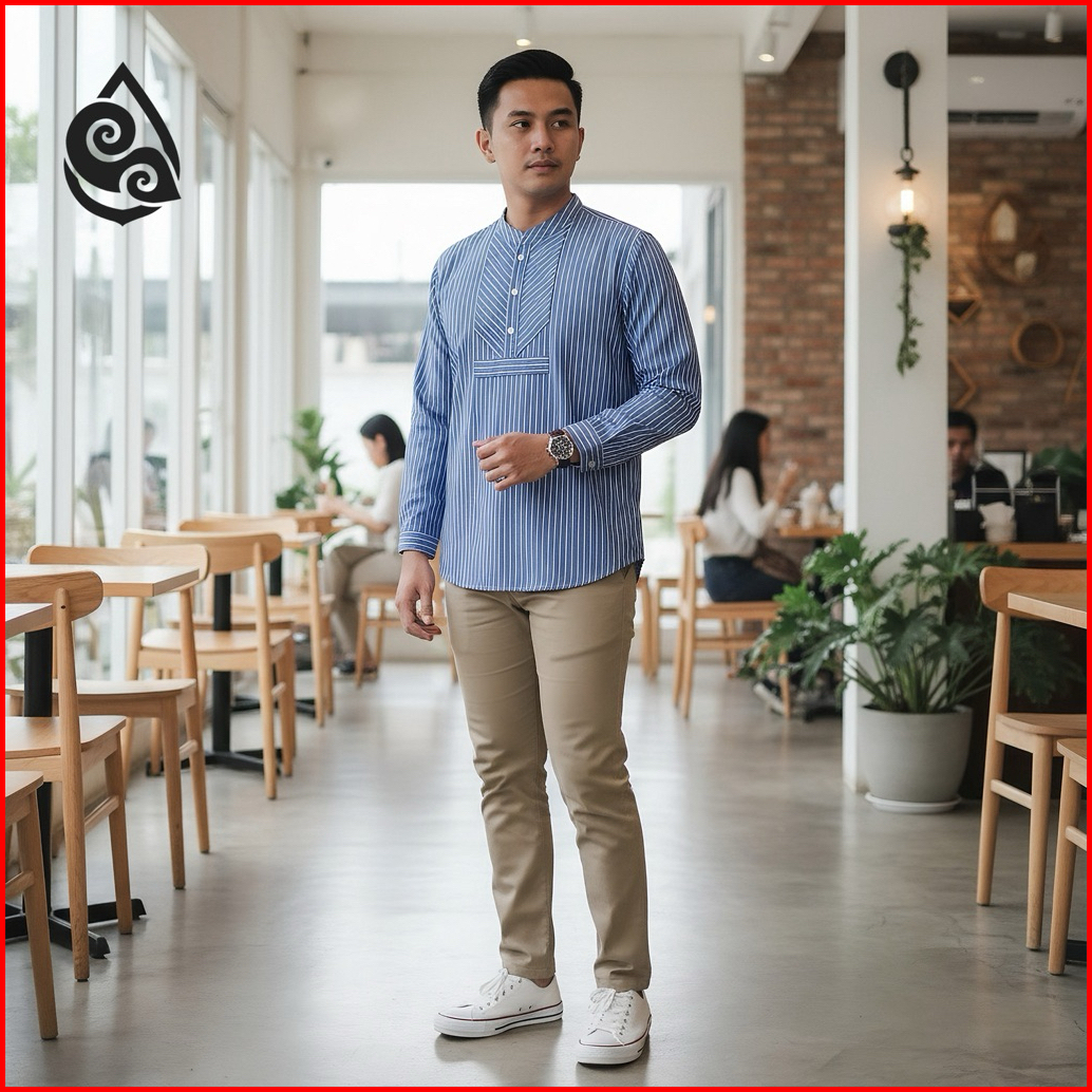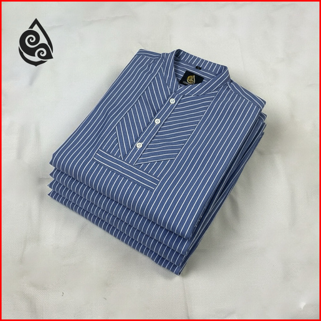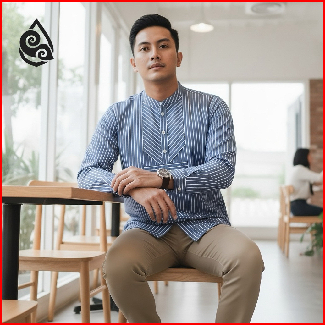 Mahabasic Stripe Kerah Koko Kemeja Shanghai Casual Slimfit Ukuran S M L Xl Xxl By Mahaprabu