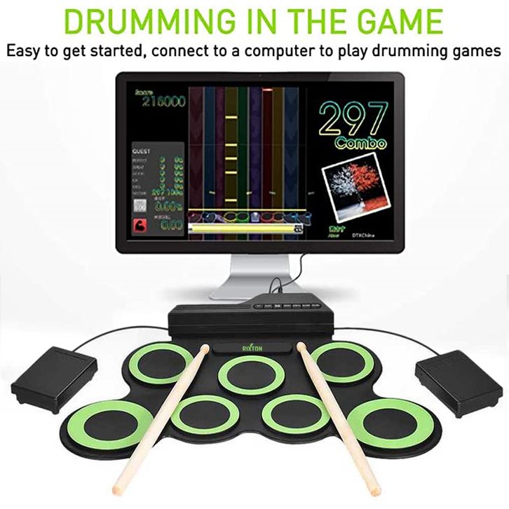 DRUM ELEKTRIK / RIXTON PORTABLE ELECTRONIC DRUM DIGITAL USB 9 PADS ROLL UP DRUM SET SILICONE ELECTRIC DRUM PAD KIT