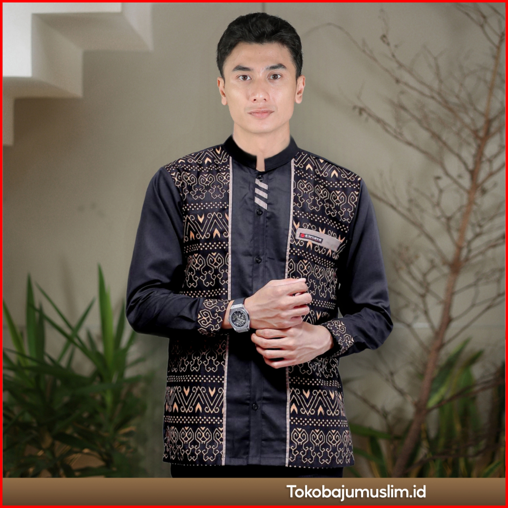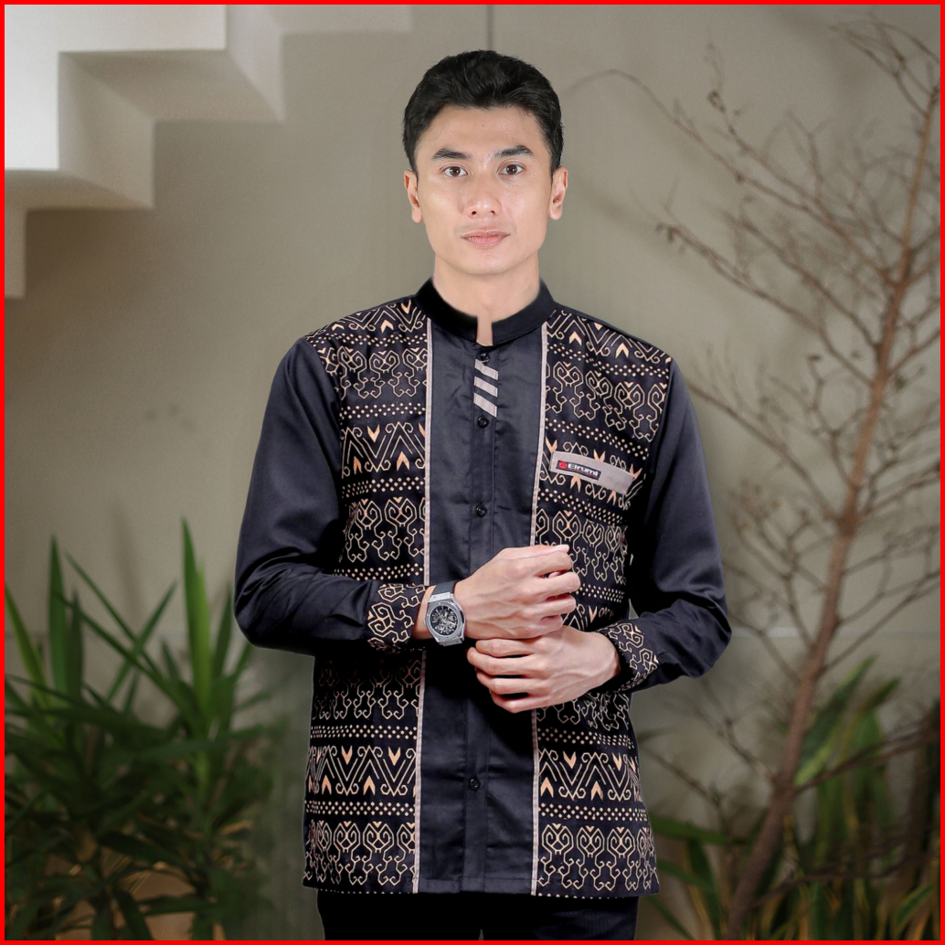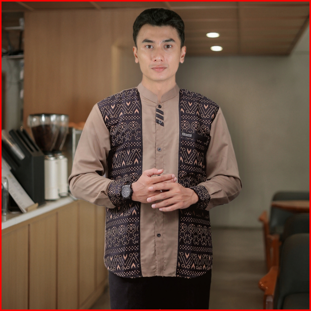 Baju Koko Pria Dewasa Lengan Panjang El Rumi Kombinasi Batik Motif Jarilist