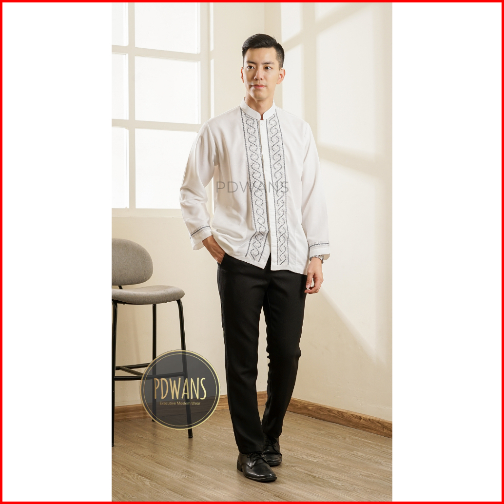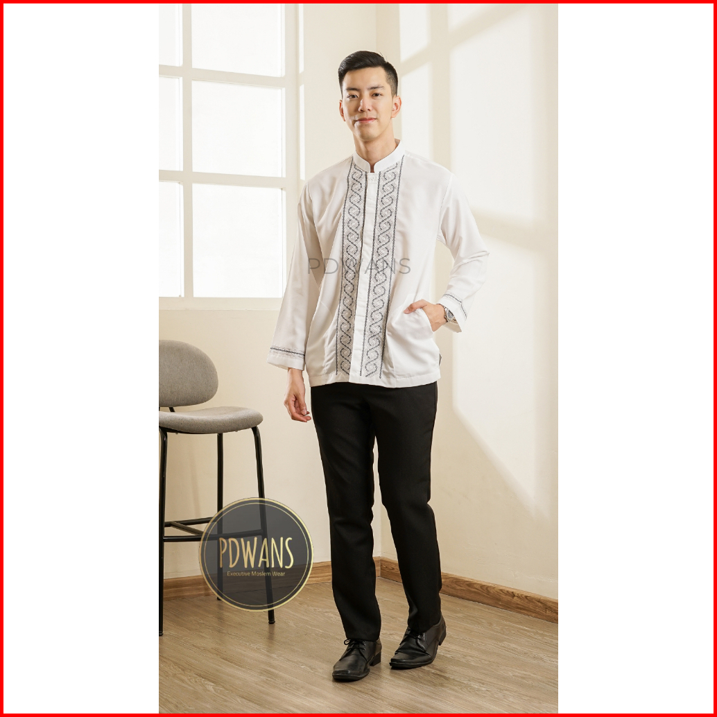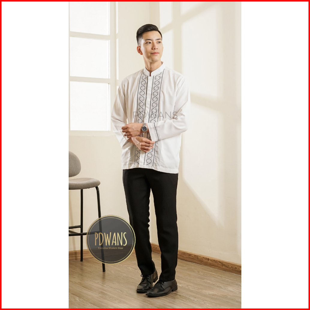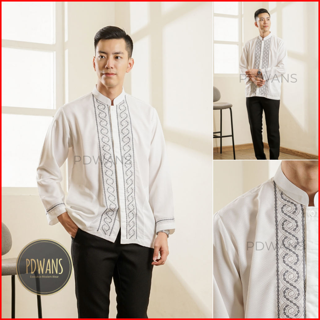 Baju Koko Poli Katun Lengan Panjang Putih Tulang Bordir Ukuran M L Xl Pdwans - Bmtpjg48