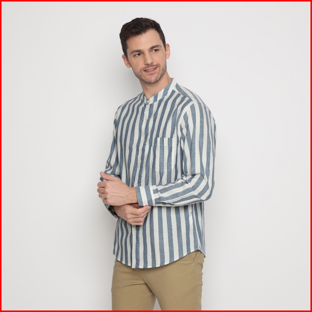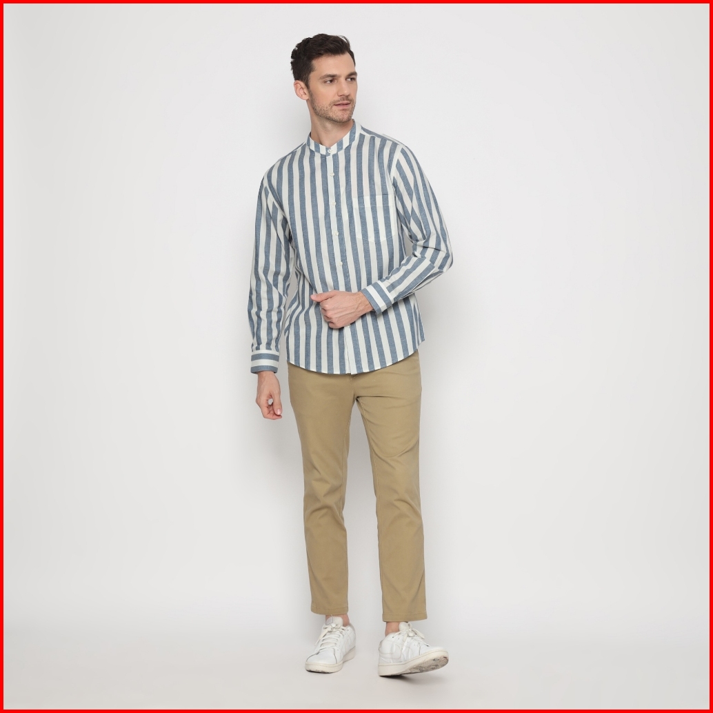 Platini Kemeja Koko Pria Lengan Panjang Katun Biru 961242