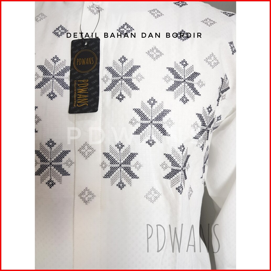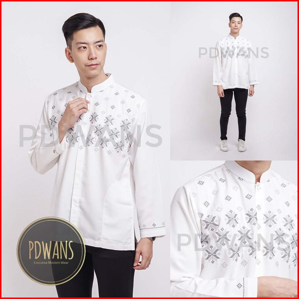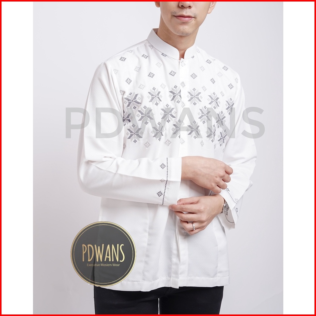 Baju Koko Lengan Panjang Putih Motif Bordir Pdwans - Alspjg27