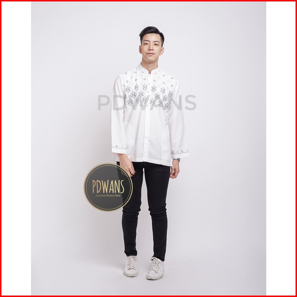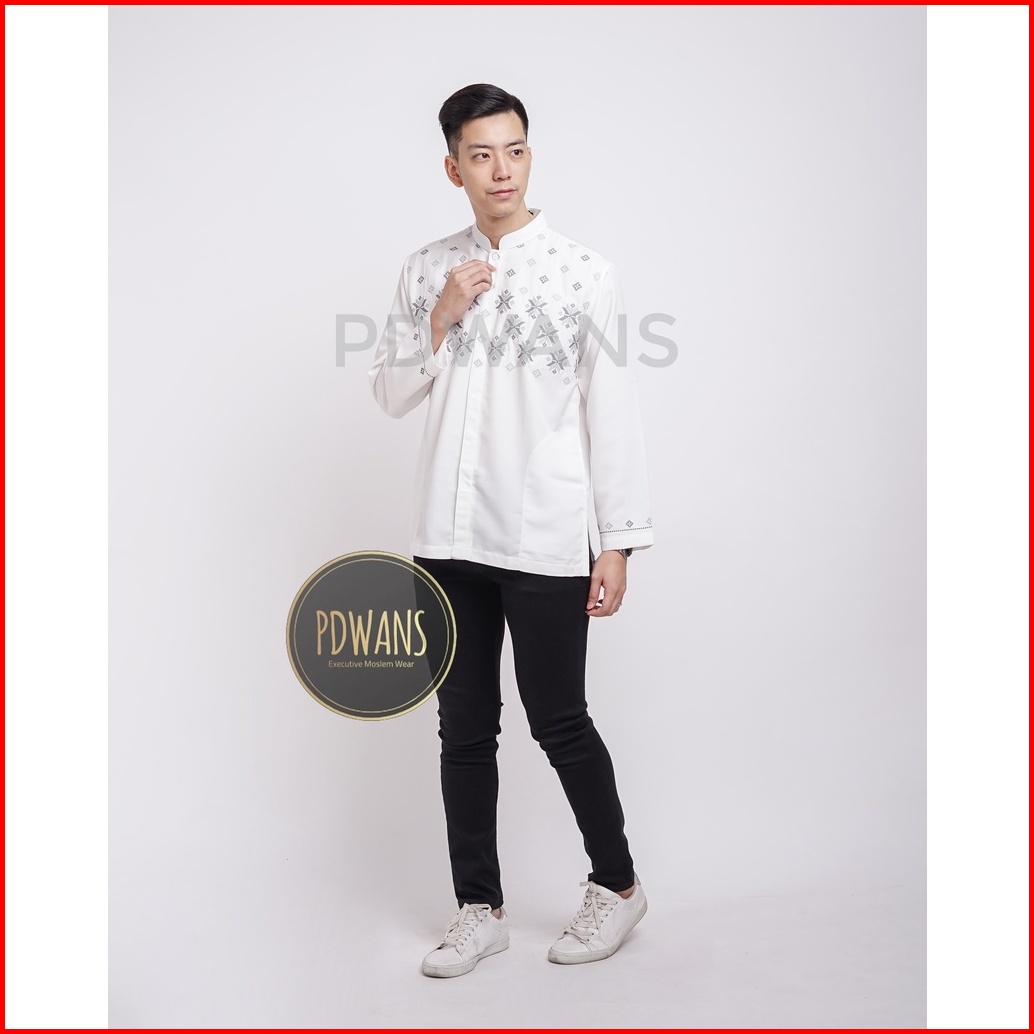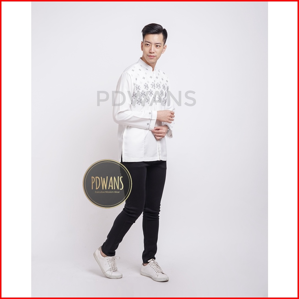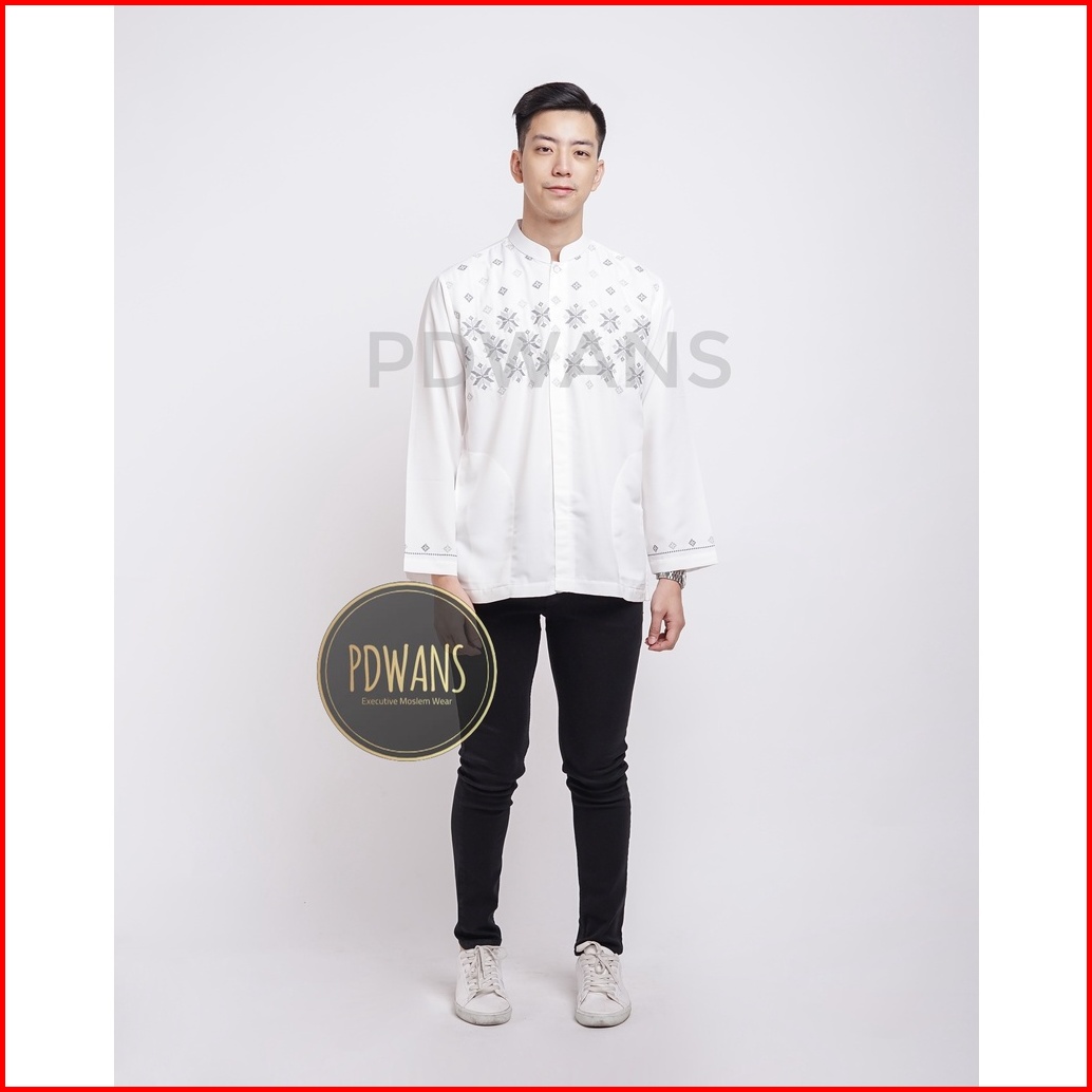 Baju Koko Lengan Panjang Putih Motif Bordir Pdwans - Alspjg27