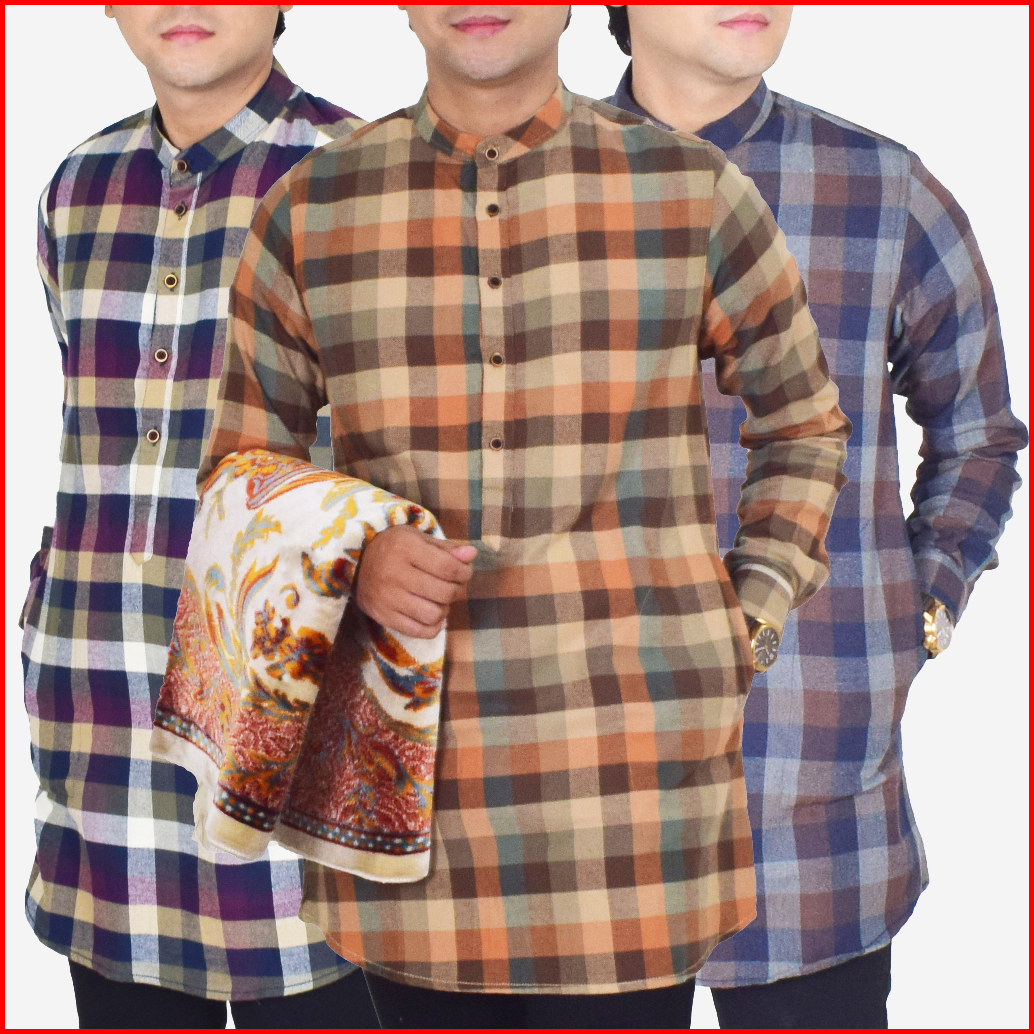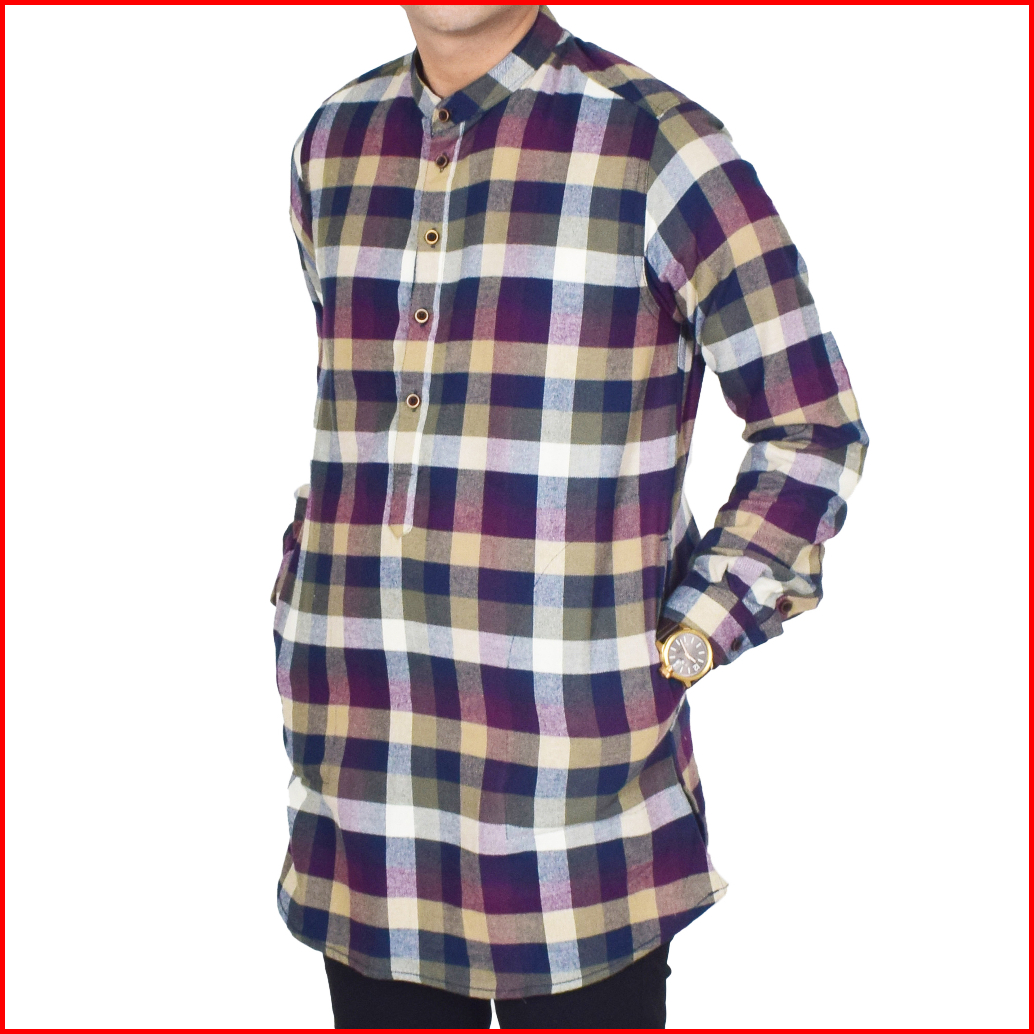 Planet Fashion Muslim Pria Lengan Panjang Long Kurta Flanel All Varian Bahan Cotton