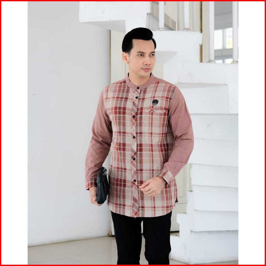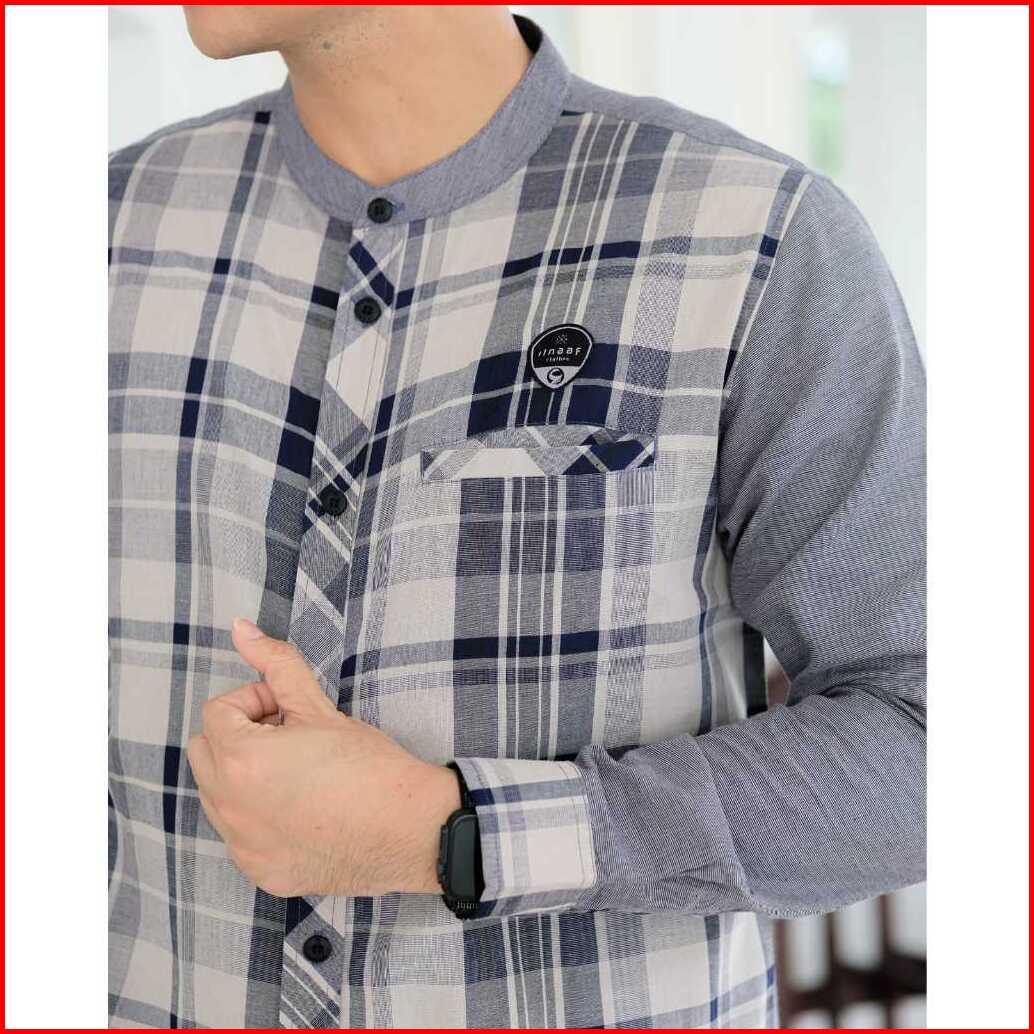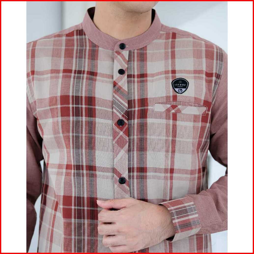 Ilnaaf Baju Koko Pria Lengan Panjang Sunduk Motif Kotak By Ilnaaf - Bahan Katun Haruka Scottish Yang Adem - Size M L Xl