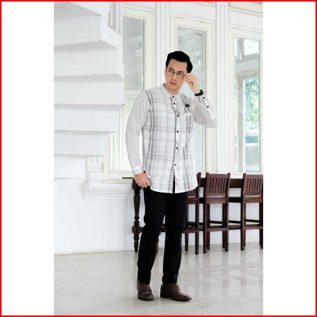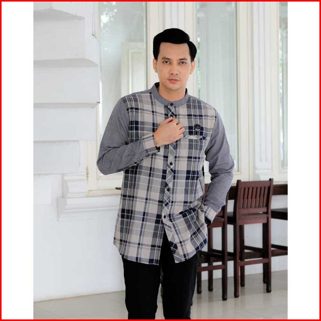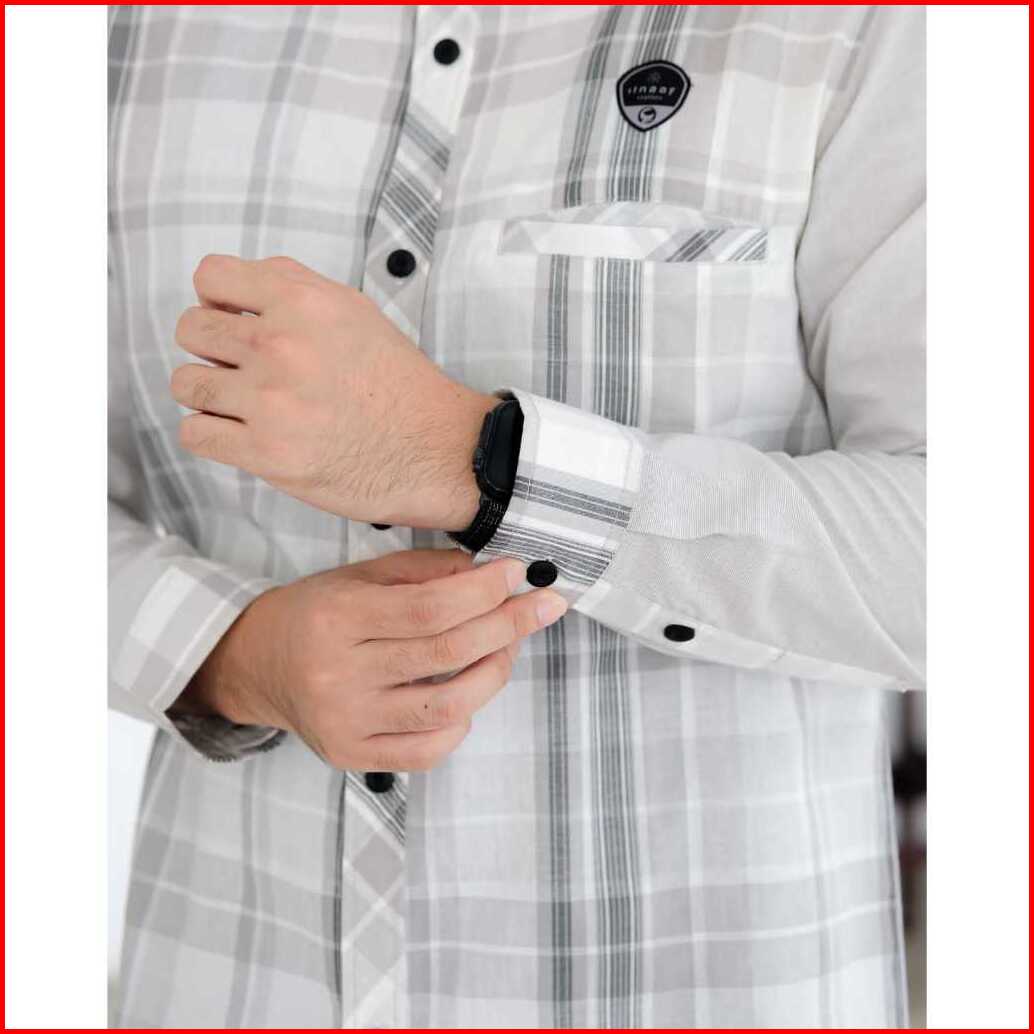 Ilnaaf Baju Koko Pria Lengan Panjang Sunduk Motif Kotak By Ilnaaf - Bahan Katun Haruka Scottish Yang Adem - Size M L Xl