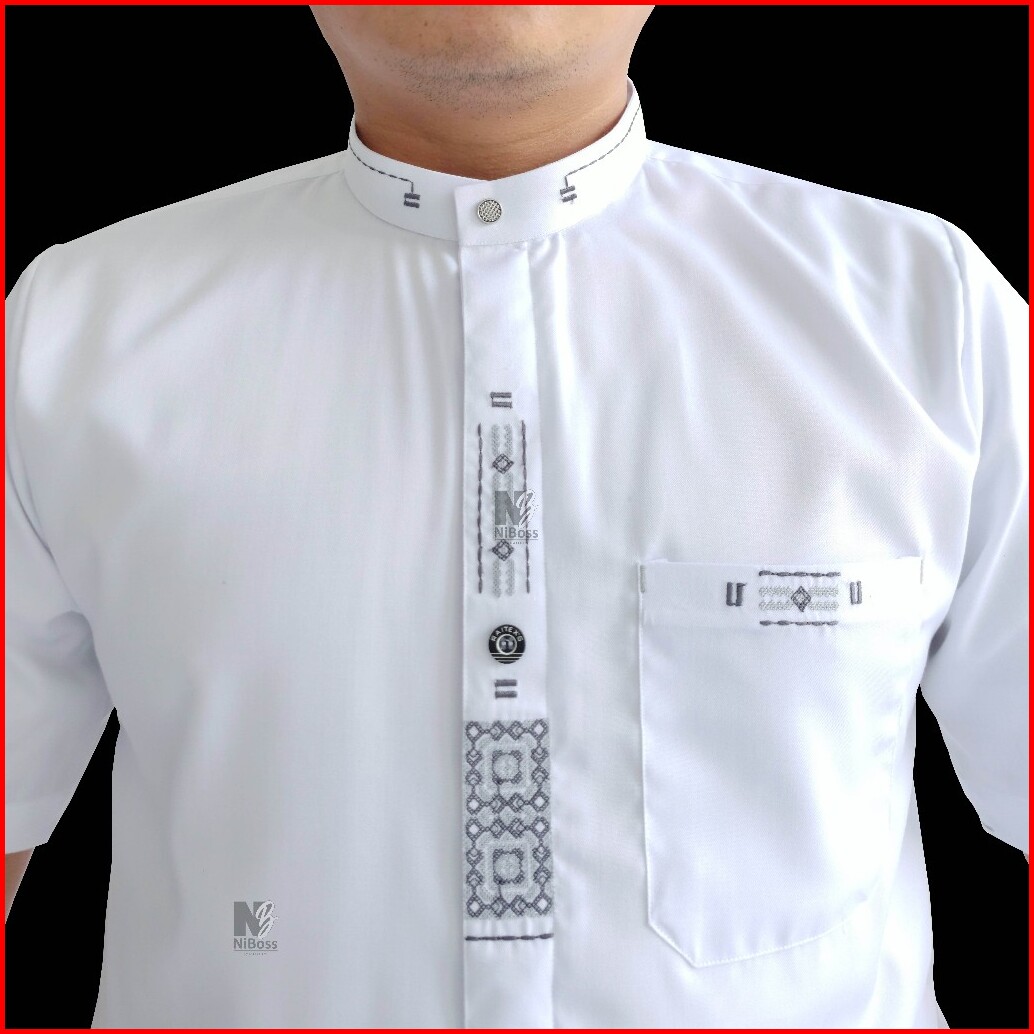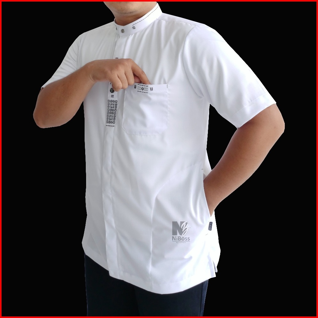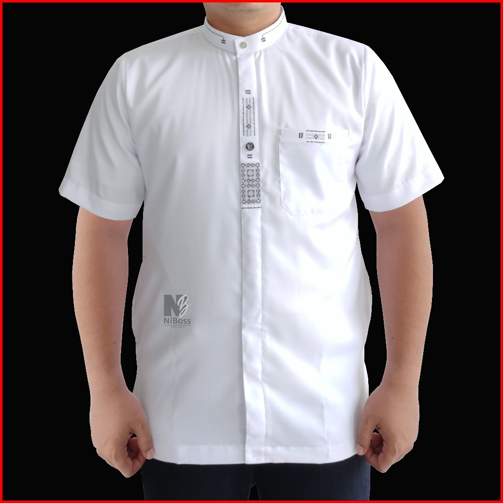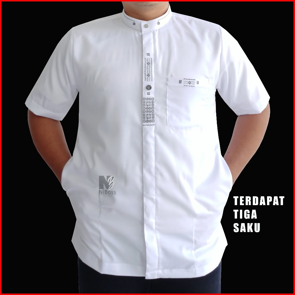 Baju Koko Putih Pria Lengan Pendek Kemko Dewasa Muslim Ukuran M L Xl Xxl Bordir Bahan Fdtoyobo