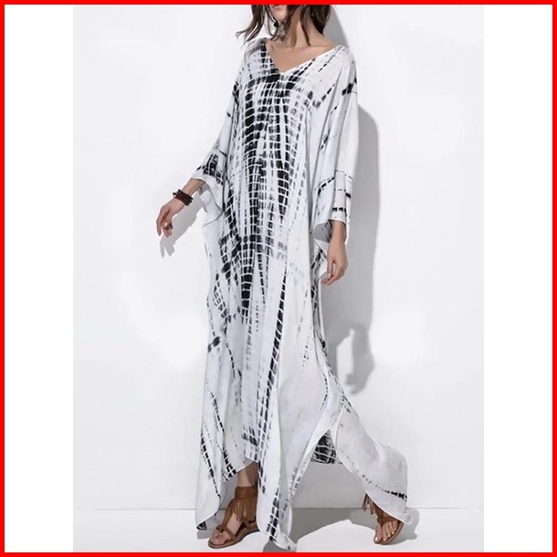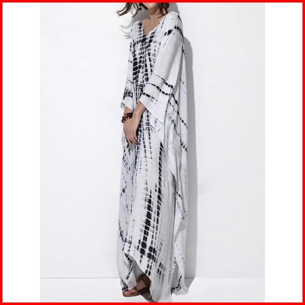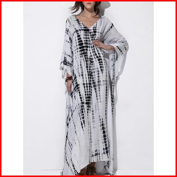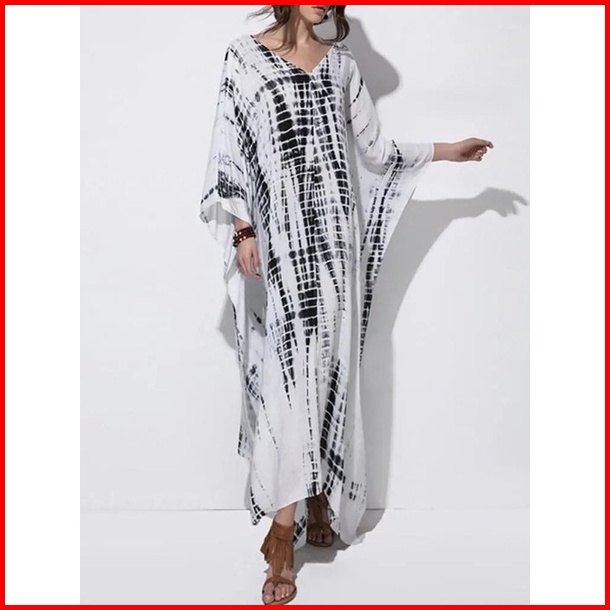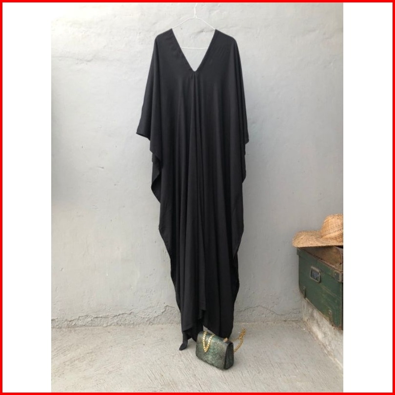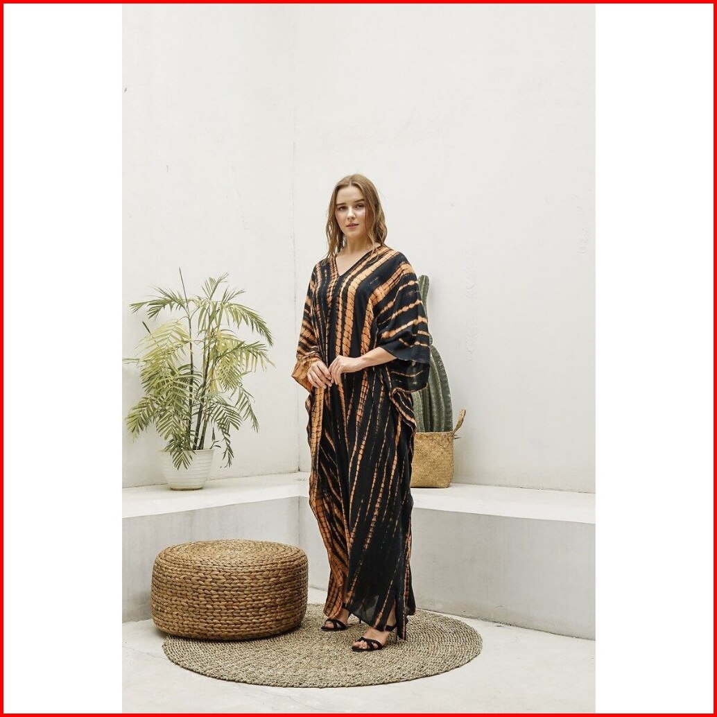 Kempruyuk Kaftan Shibori Hitam Coklat Rayon Premium