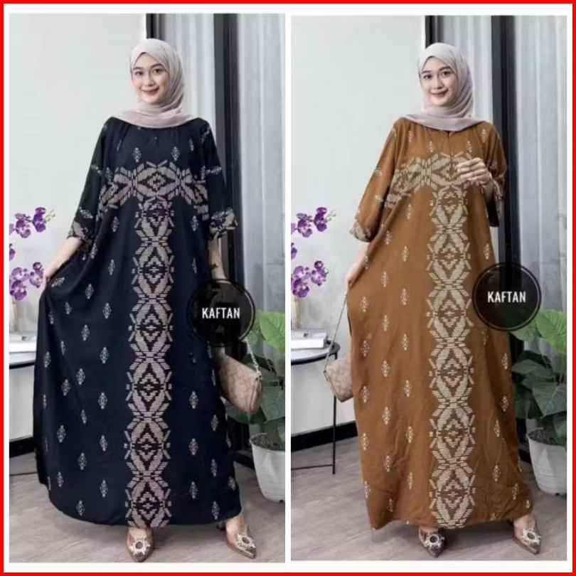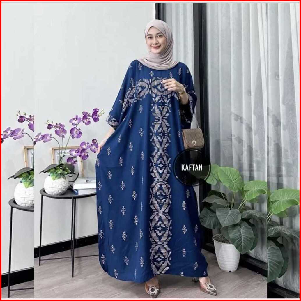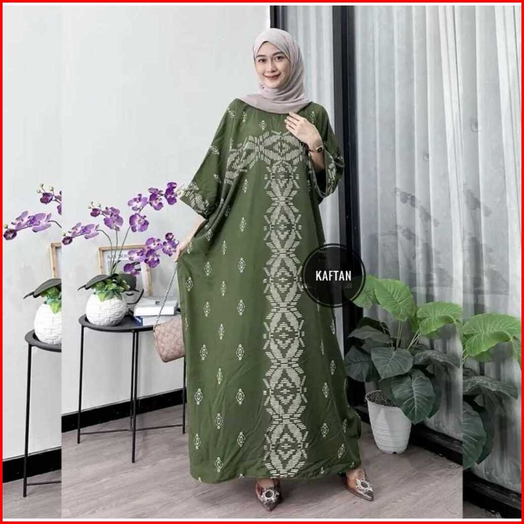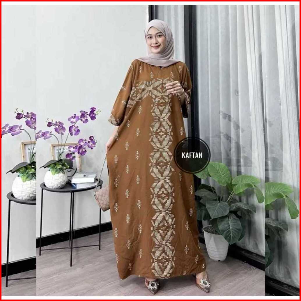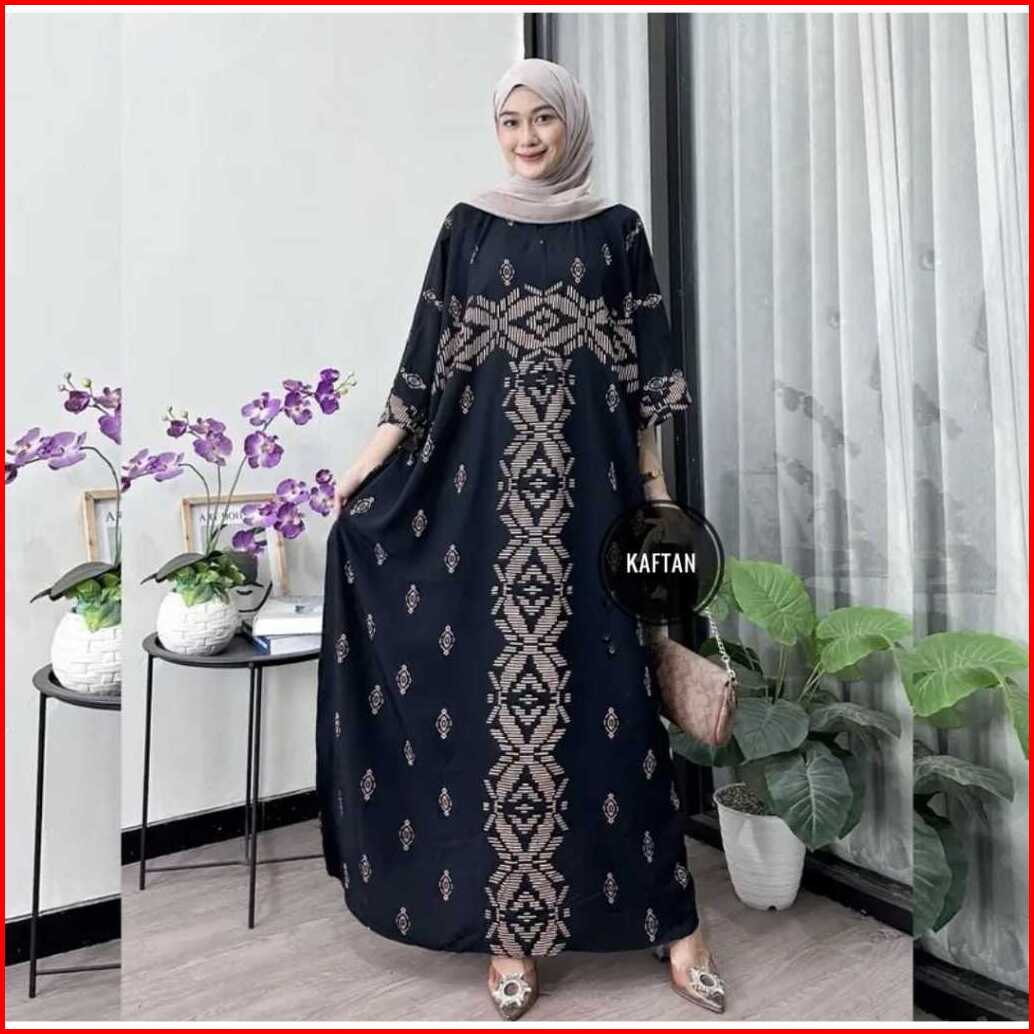 Azkia - Home Kaftan Motif Yura Bahan Rayon Super Jumbo Ld 160 Cm Baju Muslimah Kaftan Mewah Elegan