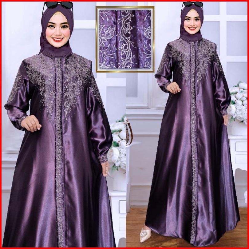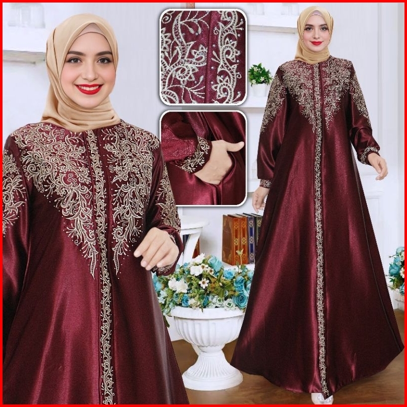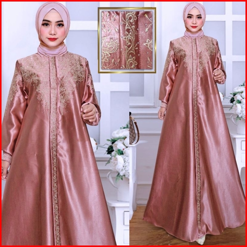Nura Collection - Gamis Alma - Baju Gamis Bordir Model Terbaru - Gamis Satin Kristal Bordir - Gamis Seragam Pesta Pernik