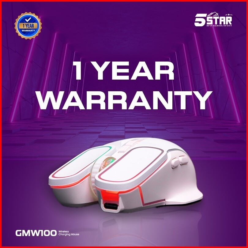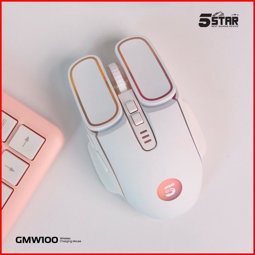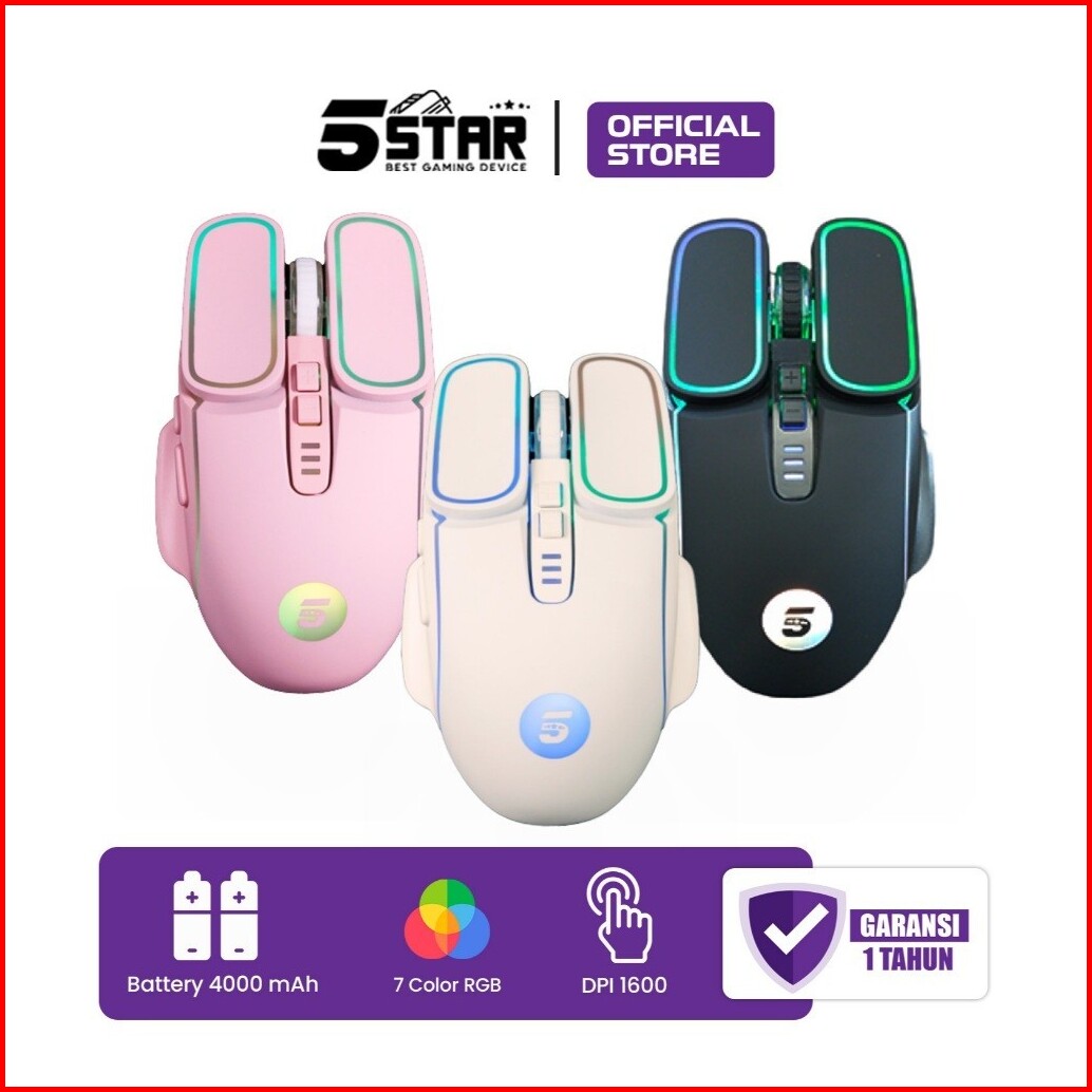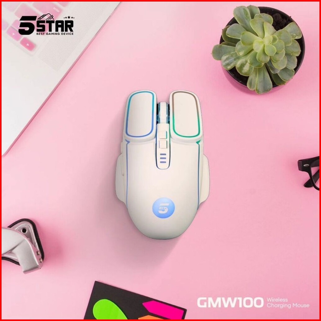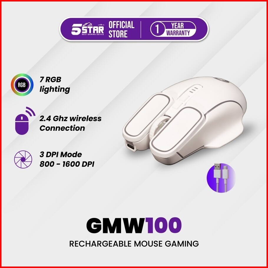 5star Mouse Wireless Gaming Rechargeable Baterai Type-c Fast Charging 1600dpi Rgb Light Gmw100 White