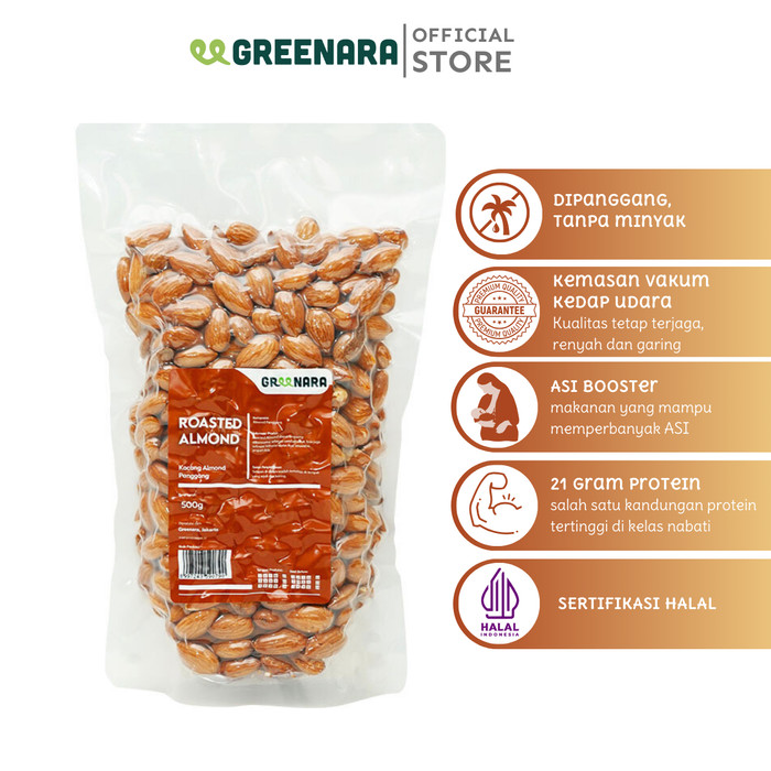 GREENARA ROASTED ALMOND 500GR / KACANG ALMOND PANGGANG - JAJANANKU.ID