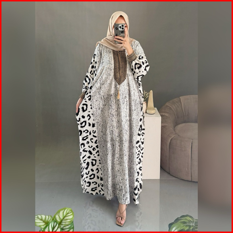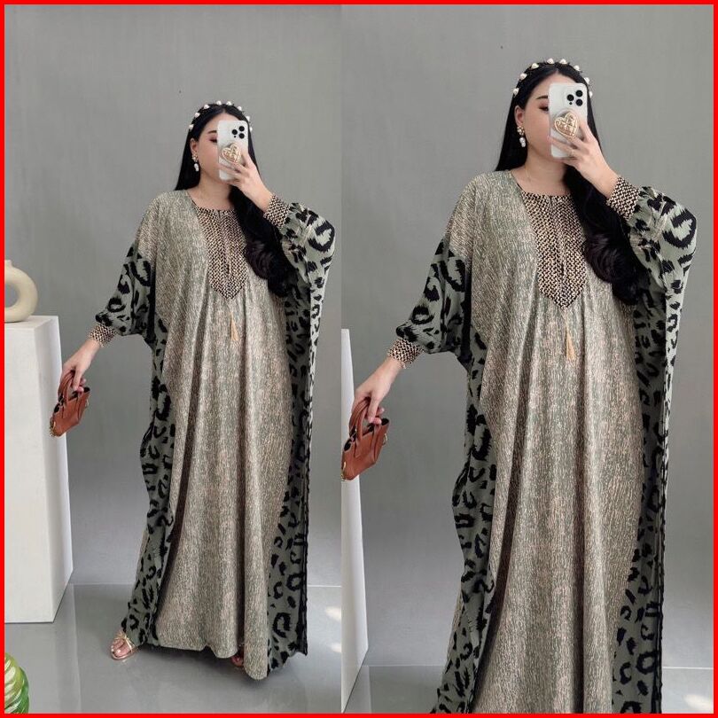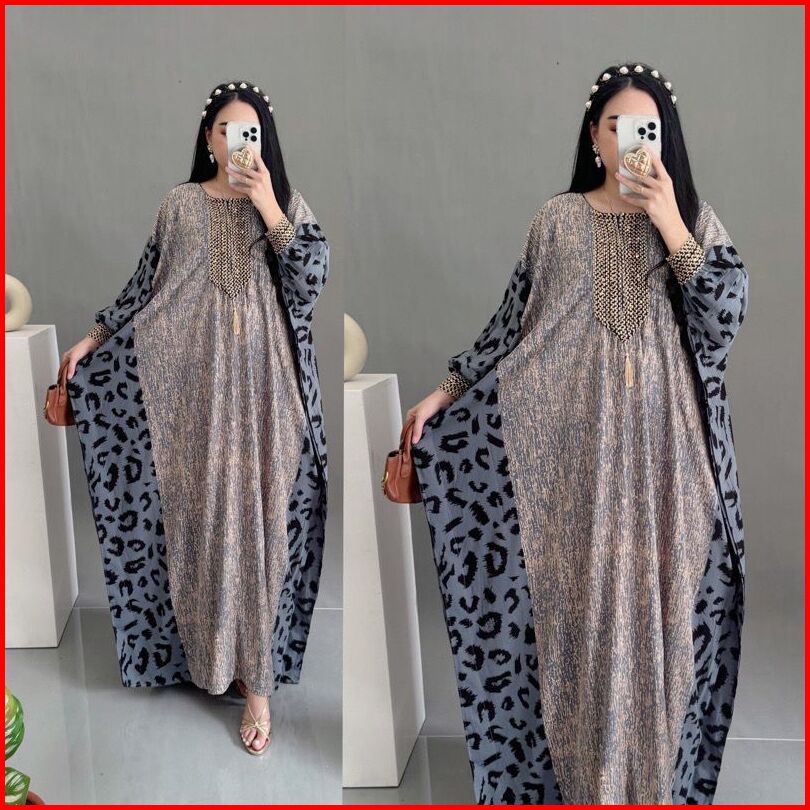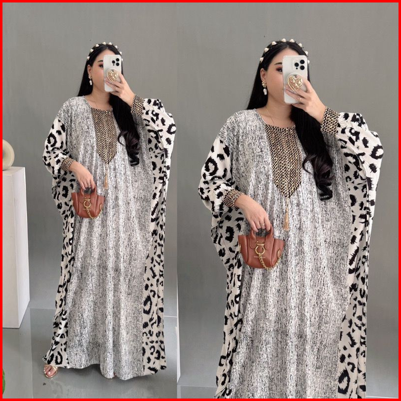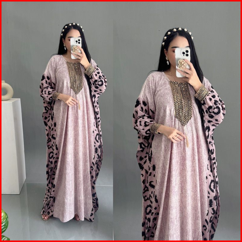 Kaftan Renda Sultan Motif Melisa Rayon Premiu Jumbo Ld 150 Cm Busui Resleting Depan Lengan Karet