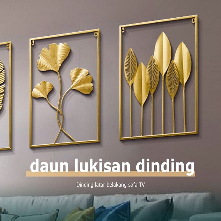 Wall Decor Hiasan Dinding Besi Metal Leaf Wall Art Decor Gold Daun Leaf Ginko Scandinavian Ukuran 60x40 Stylish