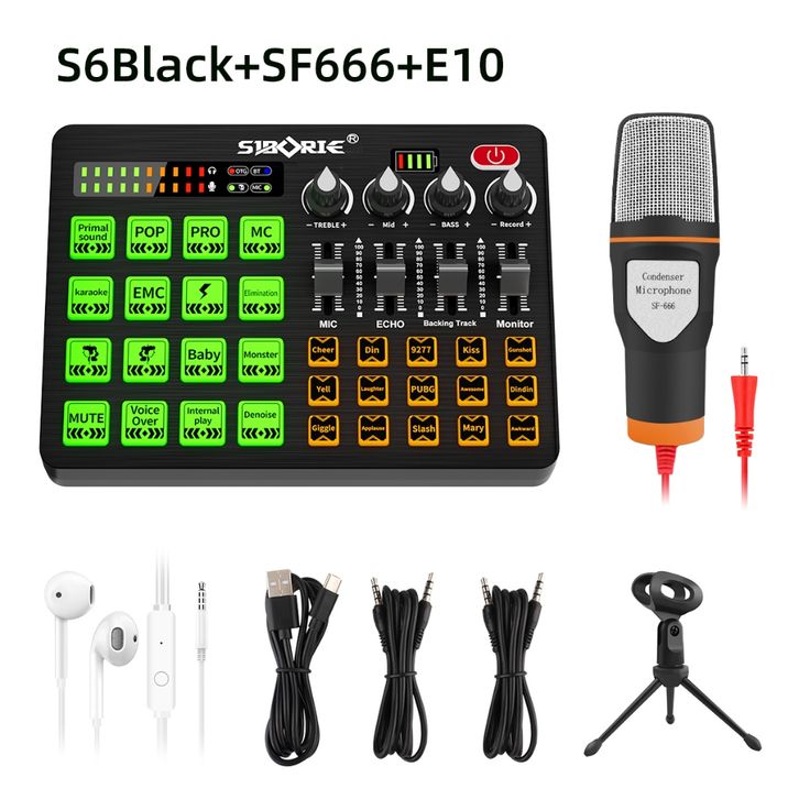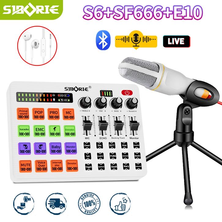 Soundcard S6+SF666 Mic Soundcard Siborie Fullset Mixer Audio for Live Streaming Media Kualitas Terbaik