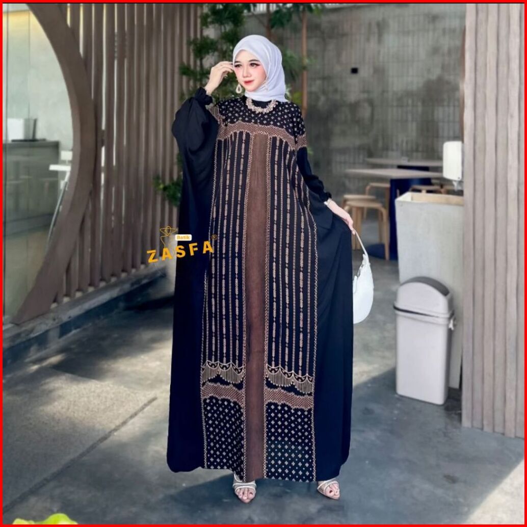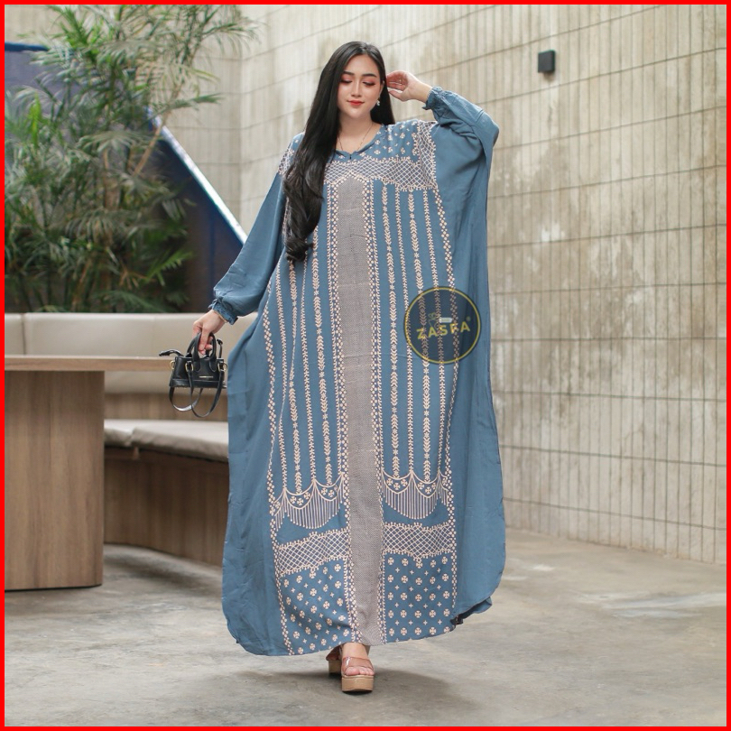 Zasfa Kaftan Hava Rayon Premium Allsize Ld 150 Cm Bb 45-90kg Busui Resleting Depan Lengan Panjang