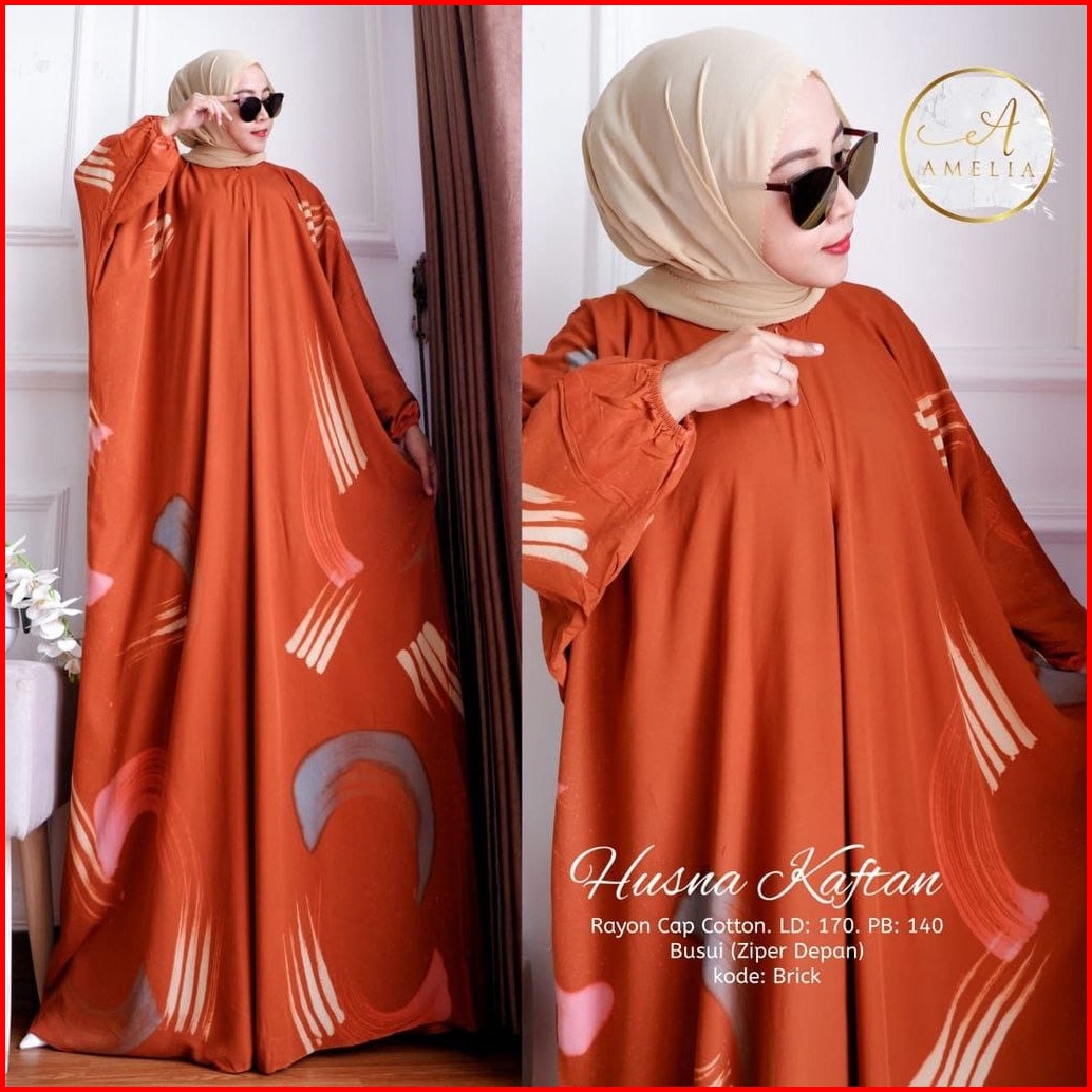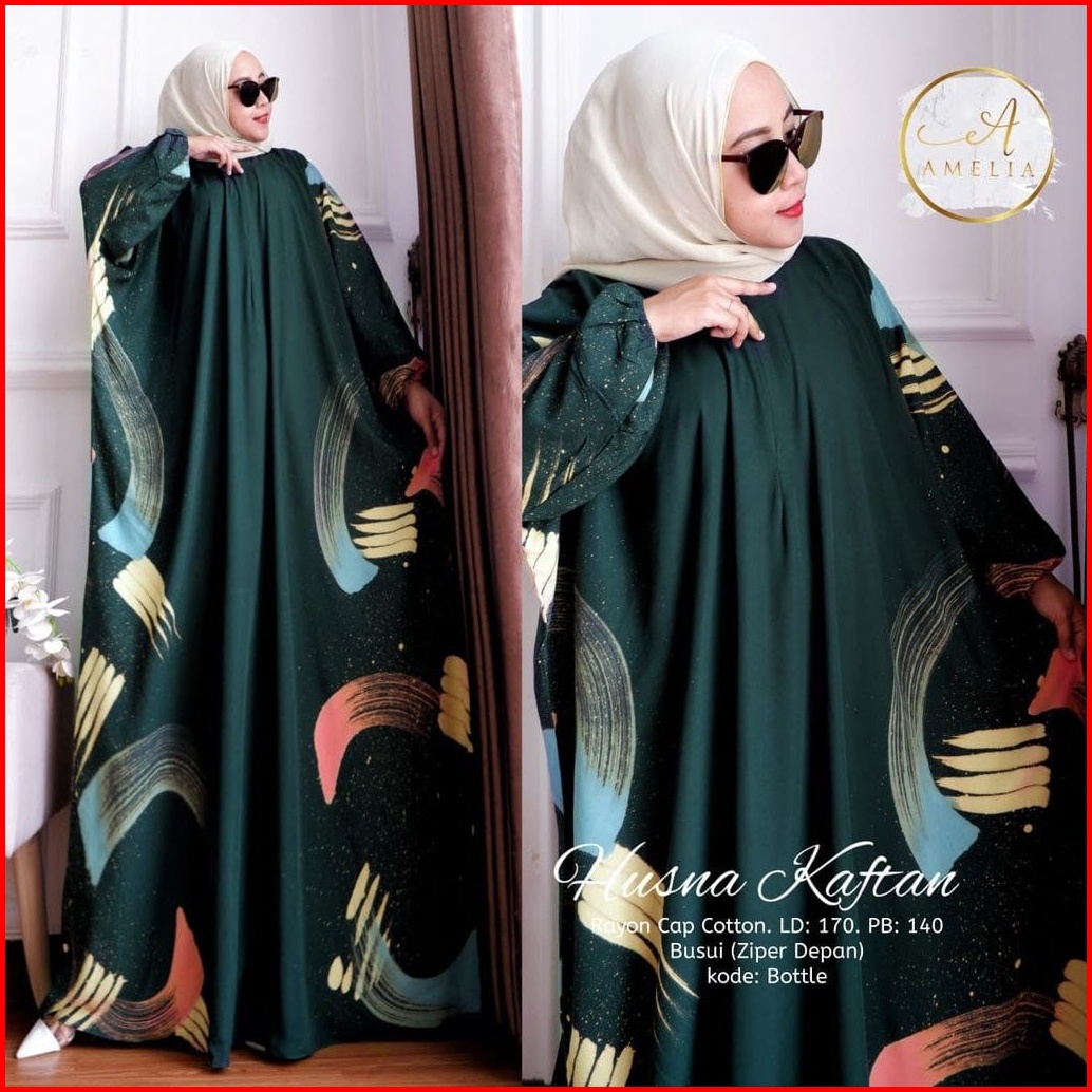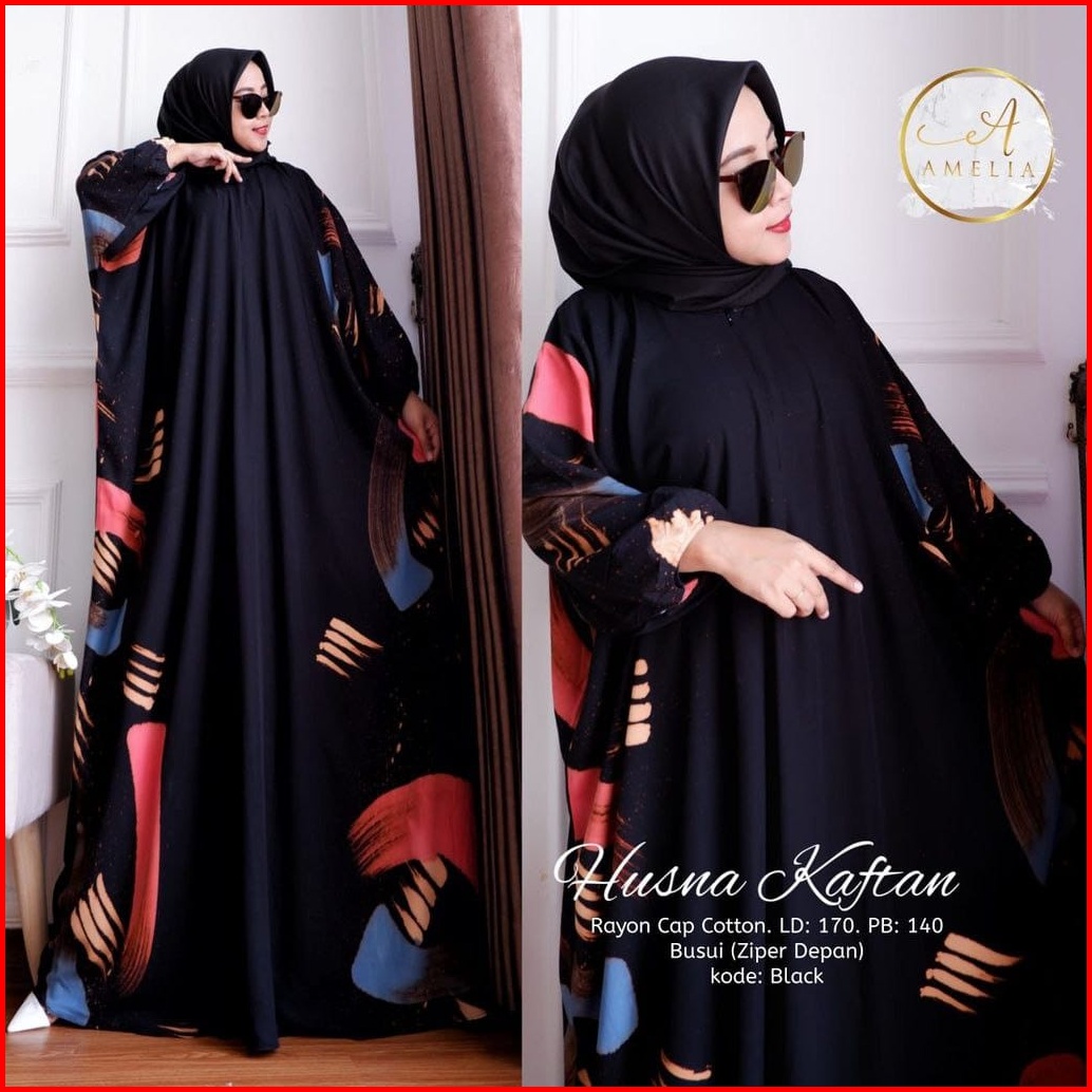 Husna Kaftan Wanita Jumbo Batik Lukis Kuas Handmade Busui Lengan Panjang - Kaftan Kondangan Rayon Premium