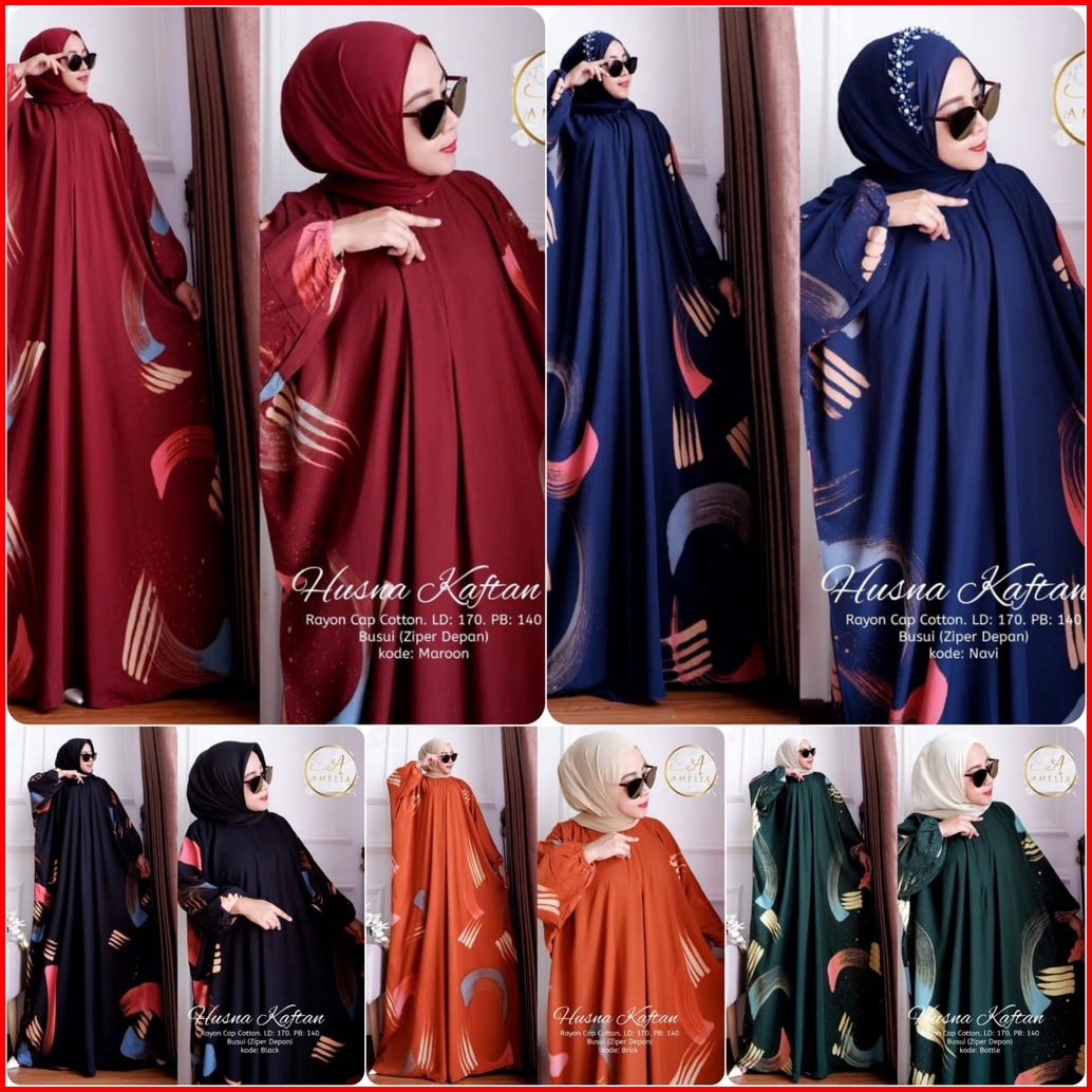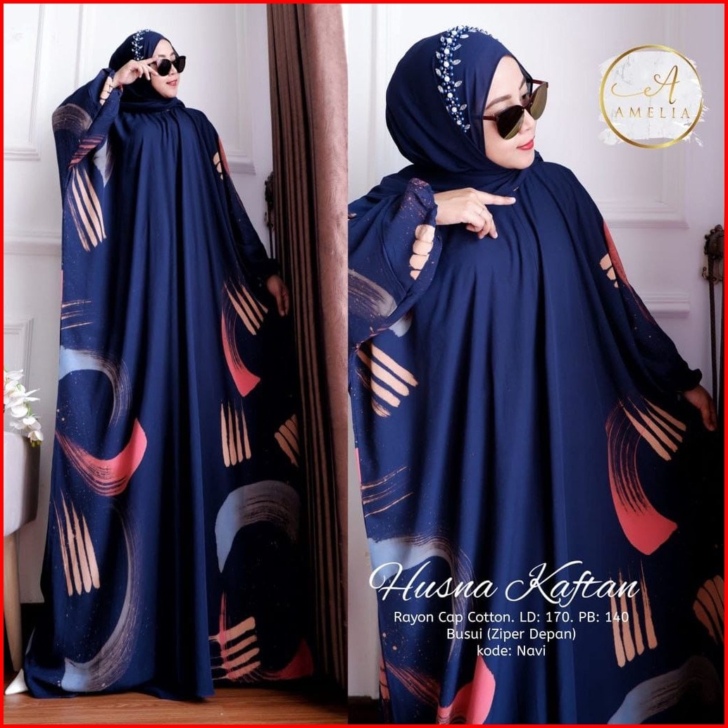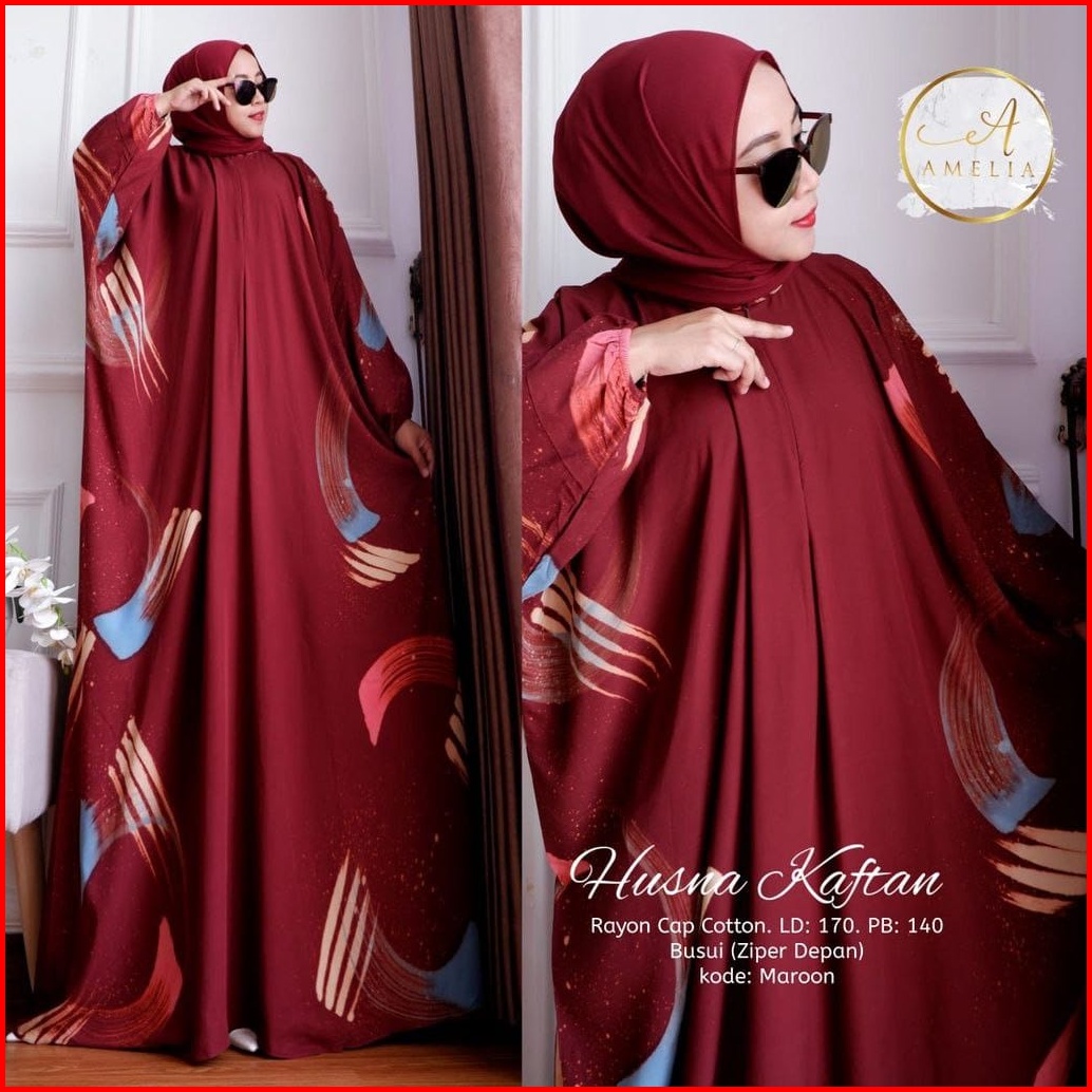 Husna Kaftan Wanita Jumbo Batik Lukis Kuas Handmade Busui Lengan Panjang - Kaftan Kondangan Rayon Premium