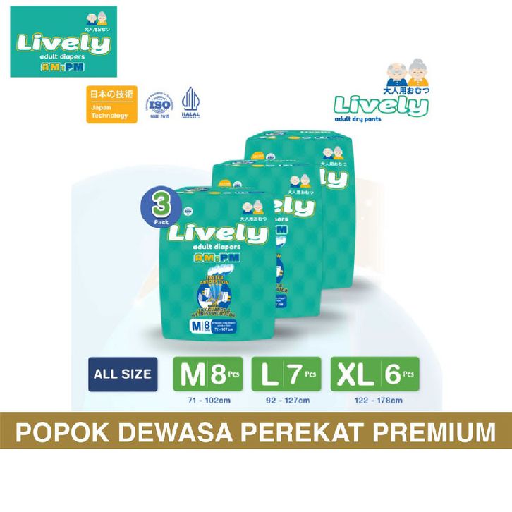 LIVELY Popok Perekat Dewasa Siang Malam M8 L7 XL6 Adult Diapers Tape Breathable Daya Serap Tinggi Anti Iritasi Termurah