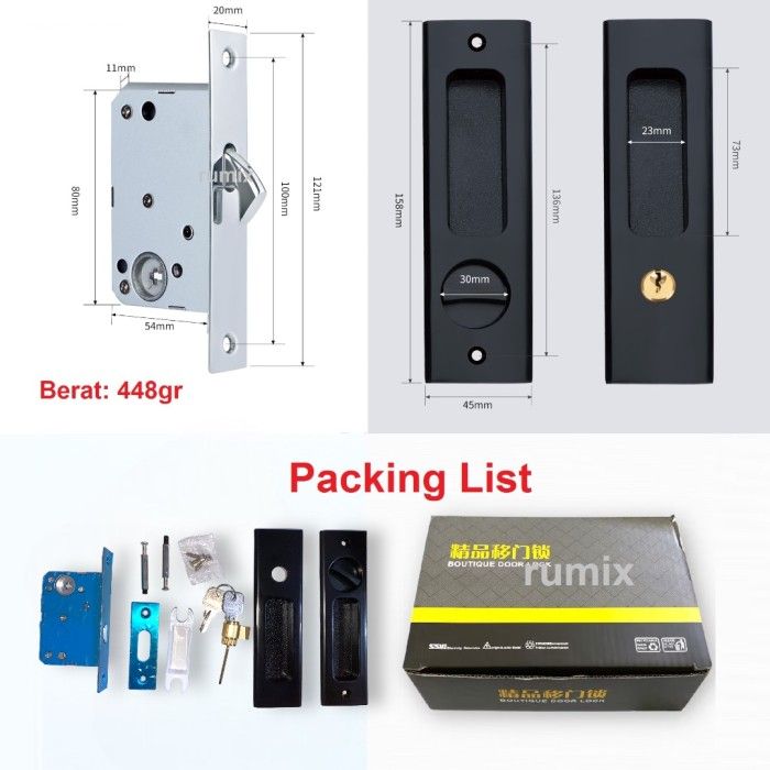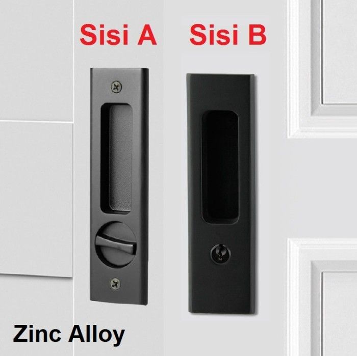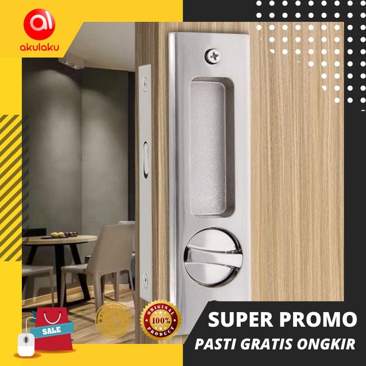 Kunci Pintu Sliding Geser Set Handle Paduan Seng Invisible Door Lock - Silver