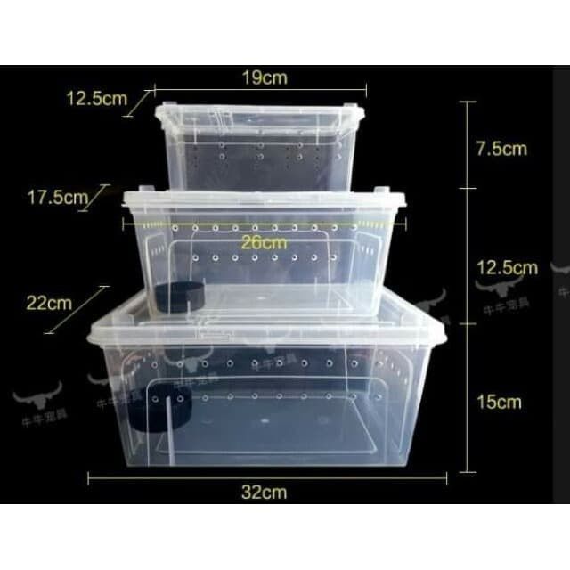 Kandang Tarantula Box Kotak Reptil Kura Air Snake Ular Gecko Ukuran 38x24x17cm Bahan Plastik Tidak Mudah Pecah Stylish