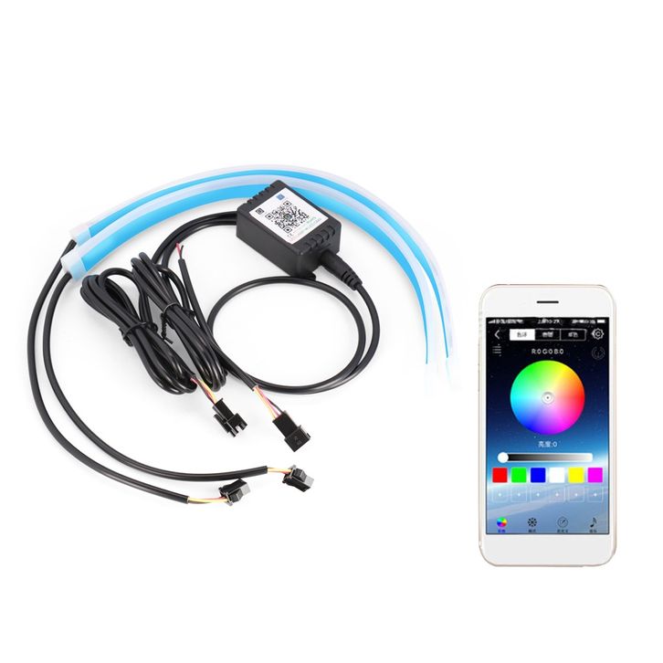 2 Buah Lampu Lari Siang Hari LED Mobi2 l DRL Kontrol Aplikasi Lampu Hias Bar Lampu Sein Aliran Warna warni RGB Fleksibel