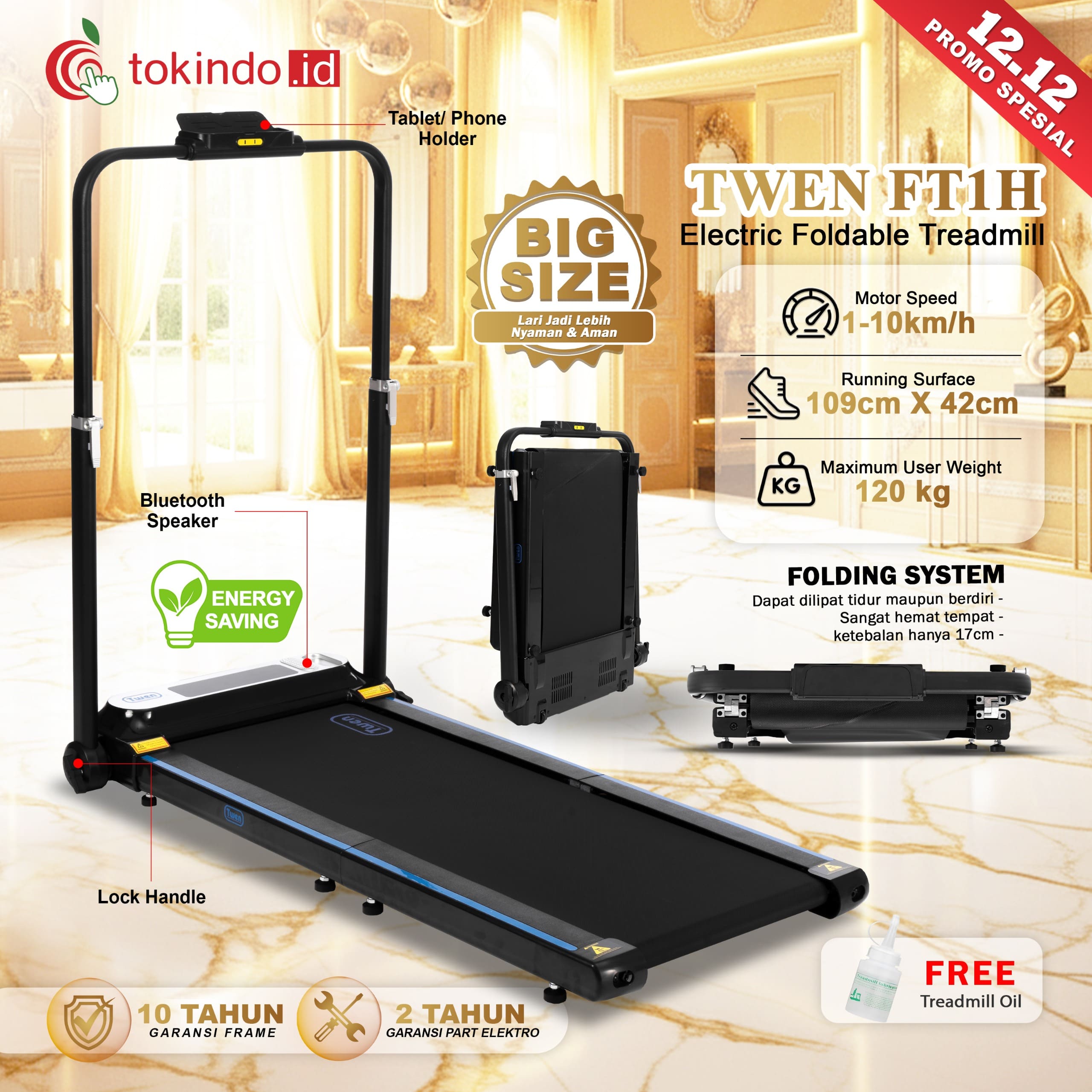 TWEN FT1 FT1H Treadmill Listrik Treadmill Portable Treadmill Walking Pad Treadmill Running Pad Treadmill Multifungsi