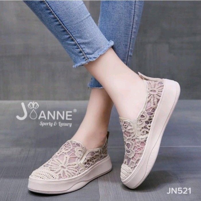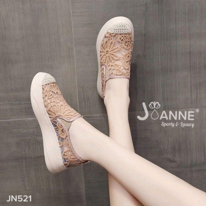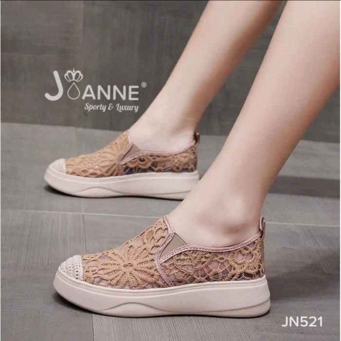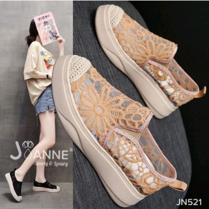 Sepatu Wanita import Brokat Loafers Shoes JN521 JOANNE ORIGINAL - BROWN PINK 35