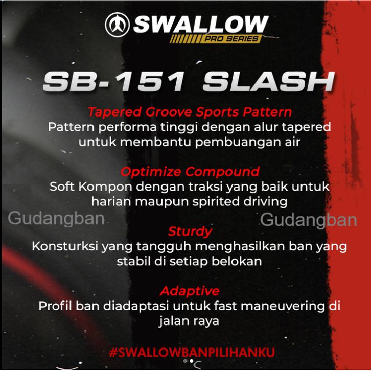 Paket Swallow SB151 SLASH 110 70 17Paket Swallow SB1 dan 130 70 17 Pro Series Tubeles Ban Motor Soft compound RING 17 ST