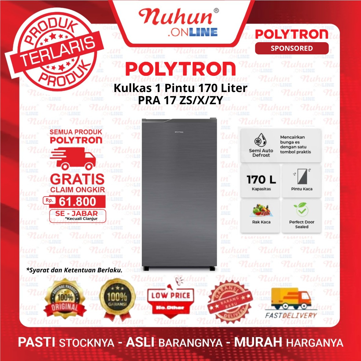 Polytron Kulkas 1 Pintu PRA 17 ZX/ZY/S 170 L