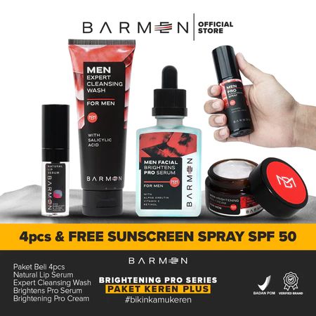 Paket Skincare Pria BARMEN Paket Keren Plus - Paket Skincare Pria Mencerahkan Wajah dan Bibir Hitam