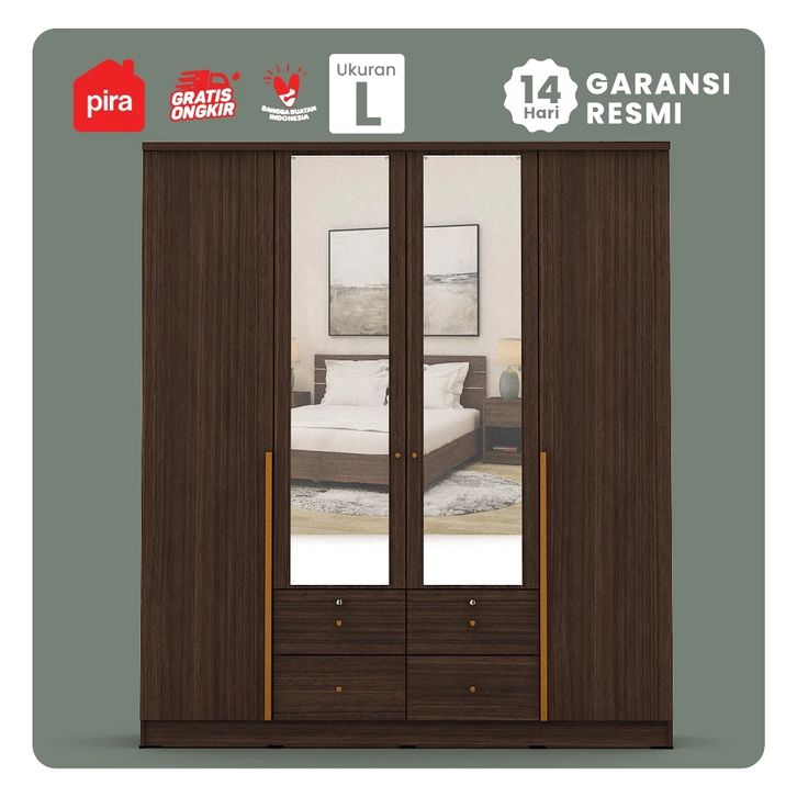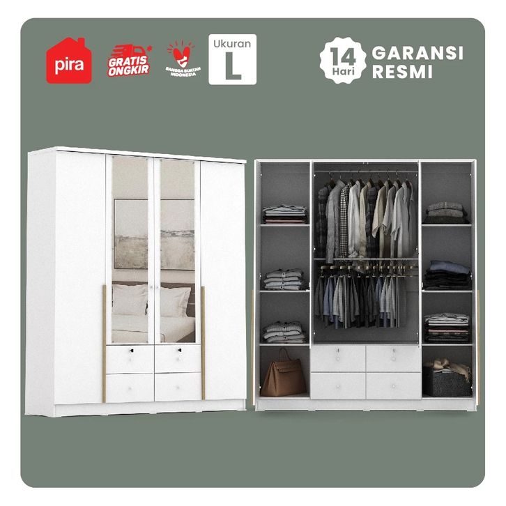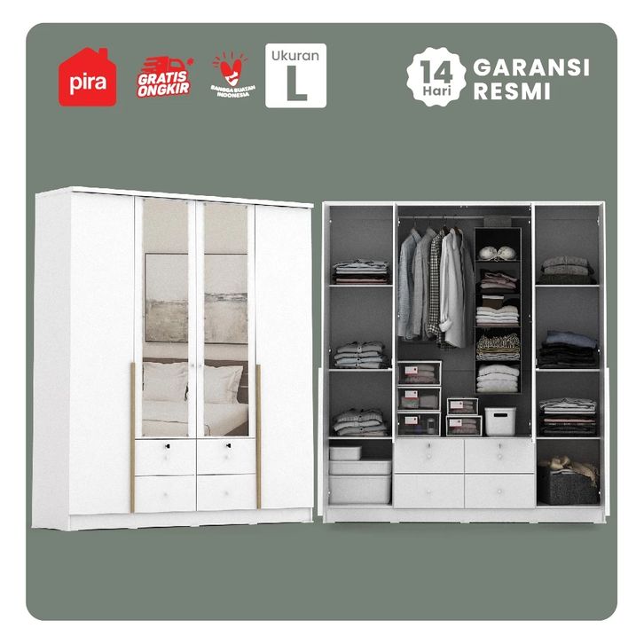 YONA 4P 4DR Lemari Pakaian 4 Pintu dengan 4 Laci / lemari plastik / lemari plastik berkualitas 2024 / lemari pakaian